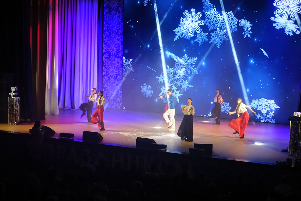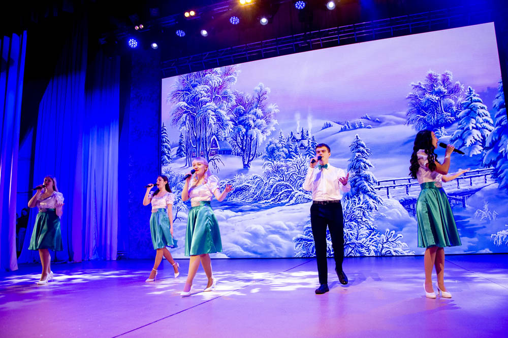 Зрителей также ждал яркий микс из исполнений арт-студии «Вереск», коллектива «Ритм», ансамблей «Отрада» и «Забава». Прозвучала на концерте и легендарная новогодняя песня «Пять минут» в исполнении солистов «Вереска».