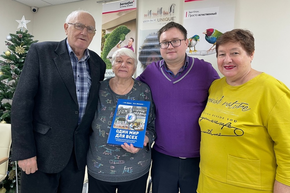 Над книгой «Один мир для всех: страницы истории Белгородского регионального отделения Общероссийской общественной организации инвалидов «Всероссийское общество глухих» работали кандидат исторических наук, доцент кафедры всеобщей истории историко-филологического факультета НИУ «БелГУ» Анна Дудка и аспирант историко-филологического факультета Вадим Шаханин. Презентация состоялась в офисе Белгородского регионального отделения Всероссийского общества глухих. Руководитель организации Юрий Шашнин в своем выступлении поблагодарил авторов и всех причастных к созданию и выпуску книги. Участники мероприятия получили экземпляр издания.