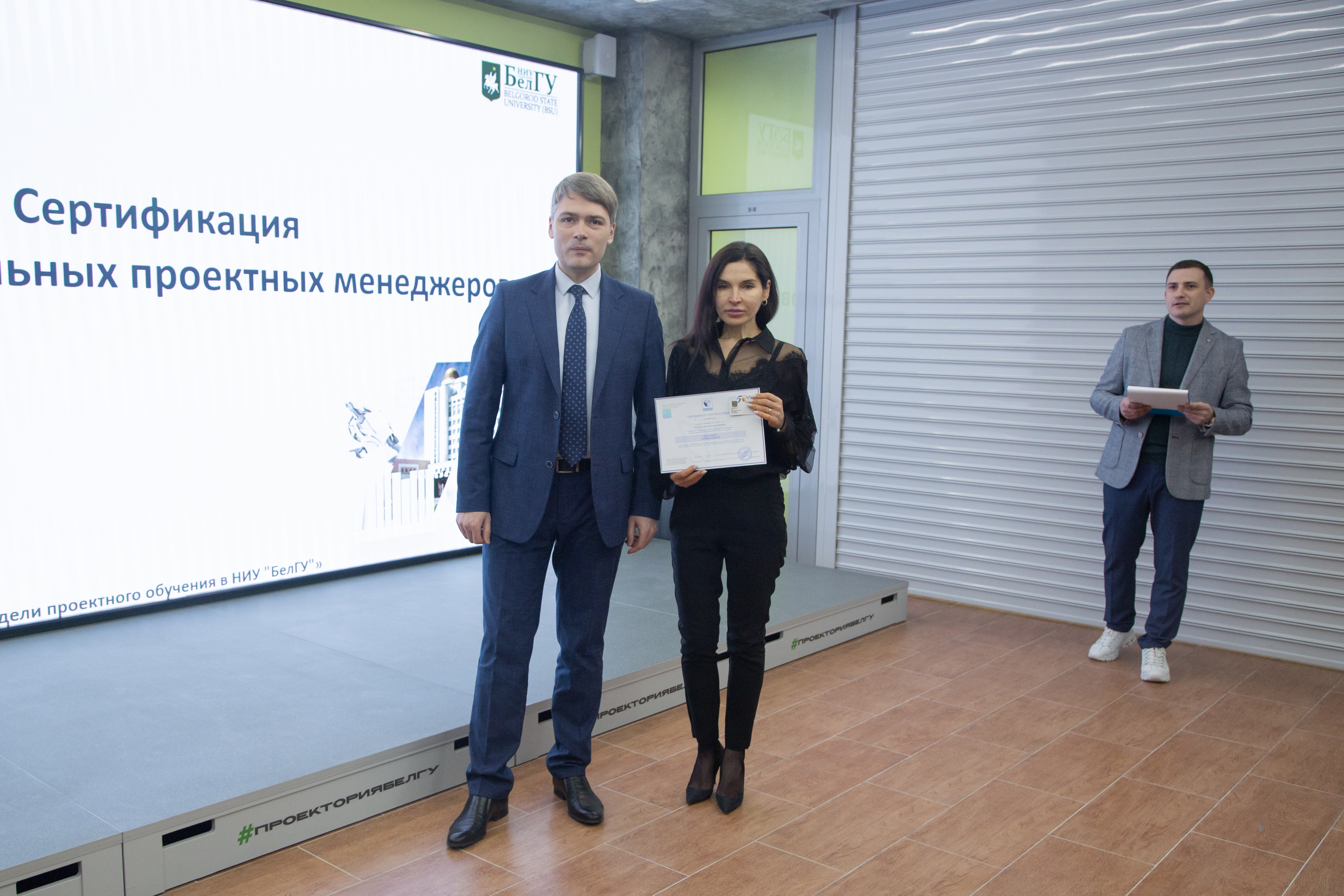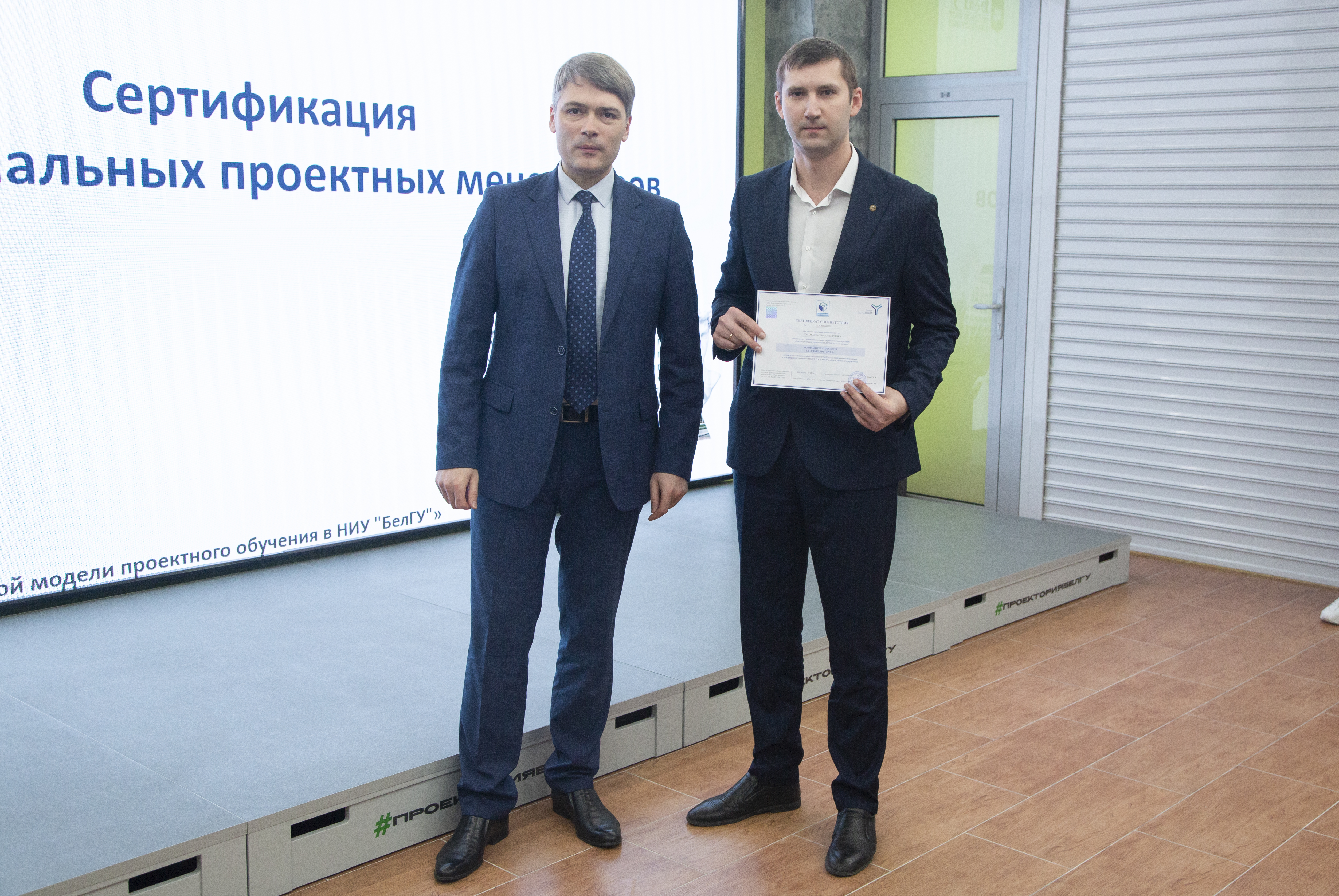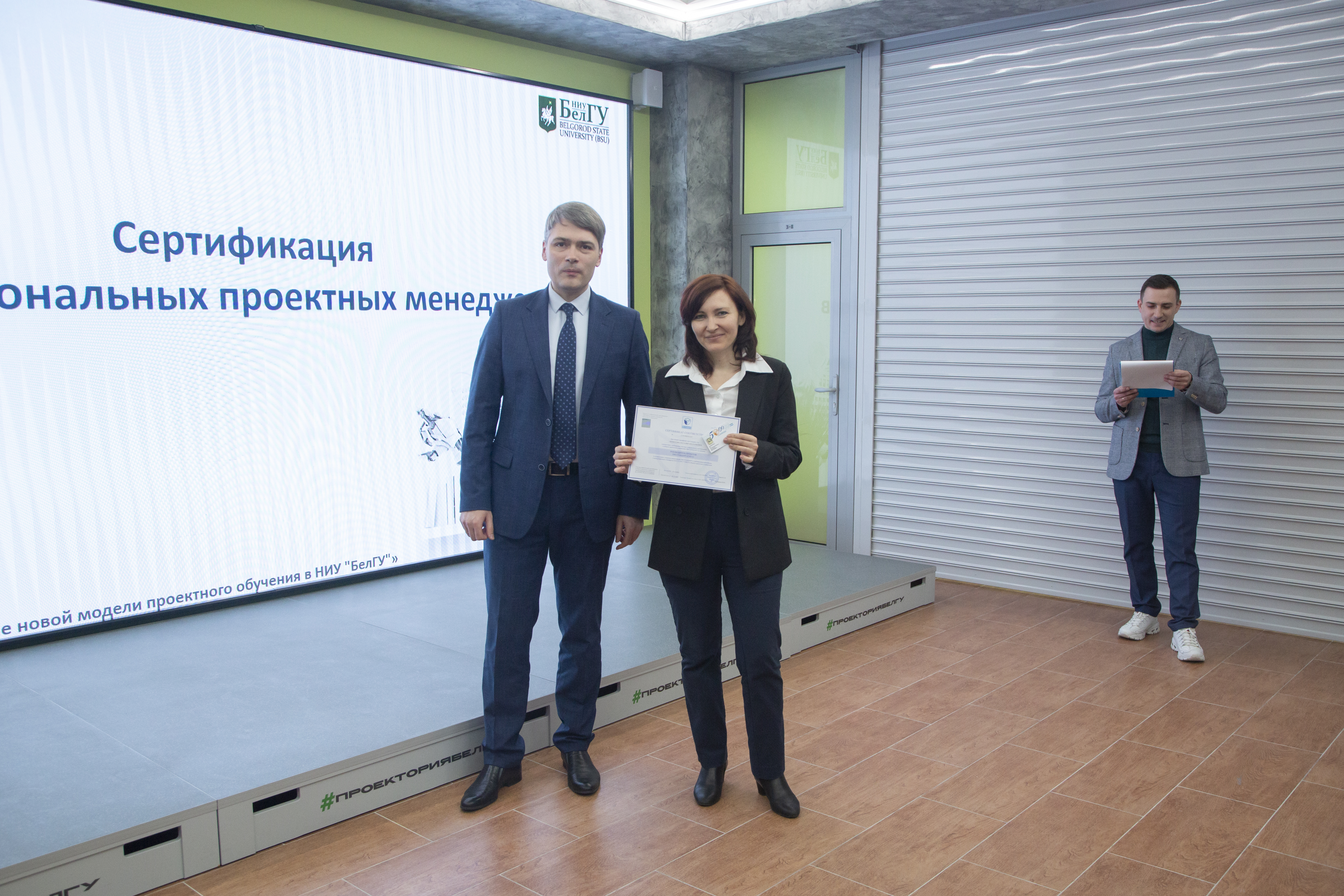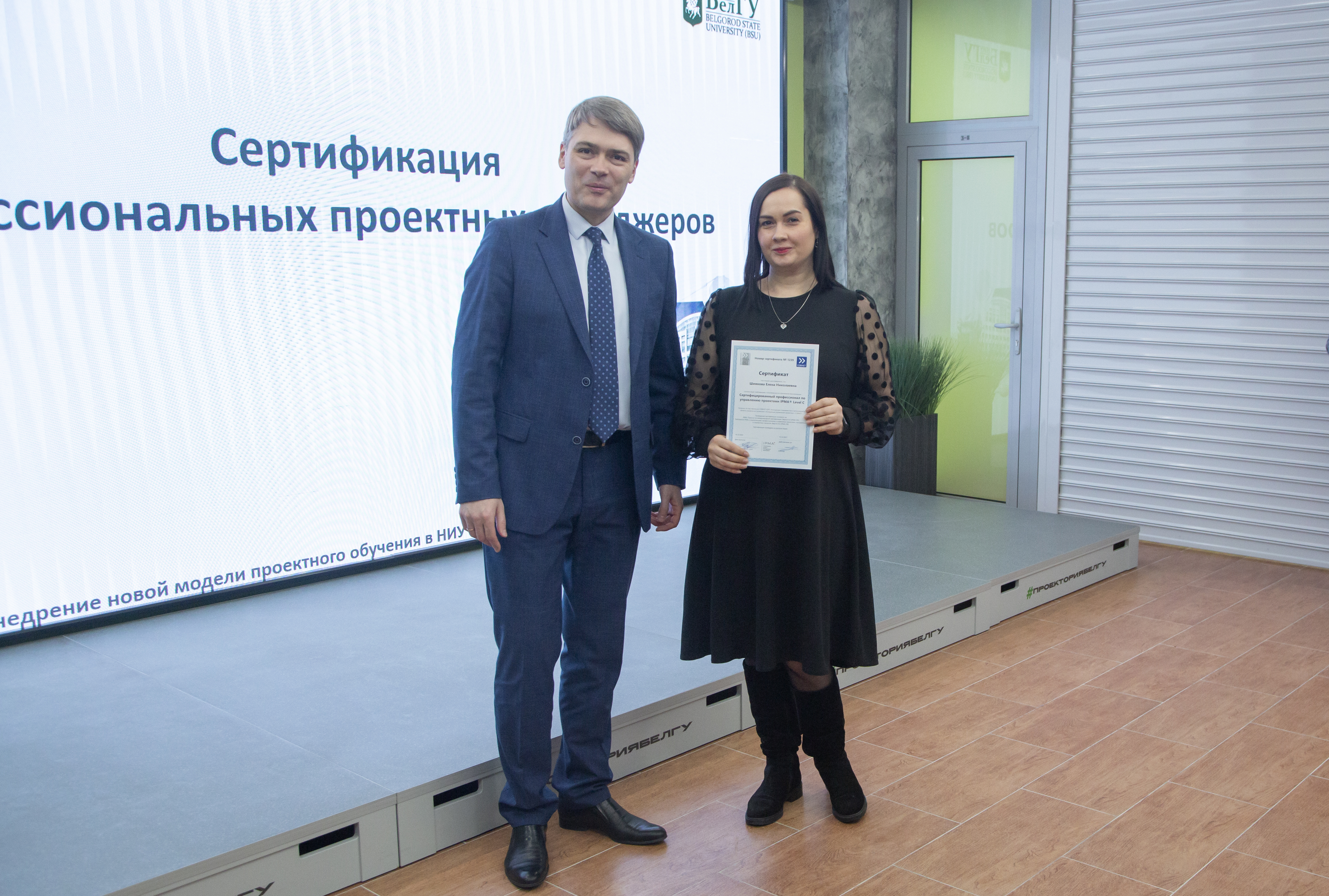 Документы о прохождении национальной сертификации ПМ СТАНДАРТ на уровень «Руководитель проектов» получили заведующий кафедры менеджмента и маркетинга Борис Тхориков, преподаватели кафедры Наталья Маматова, Татьяна Стрельцов, сотрудники проектного офиса аппарата ректора НИУ «БелГУ» Светлана Гайворонская, Елена Шиянова, Александр Гуков.
