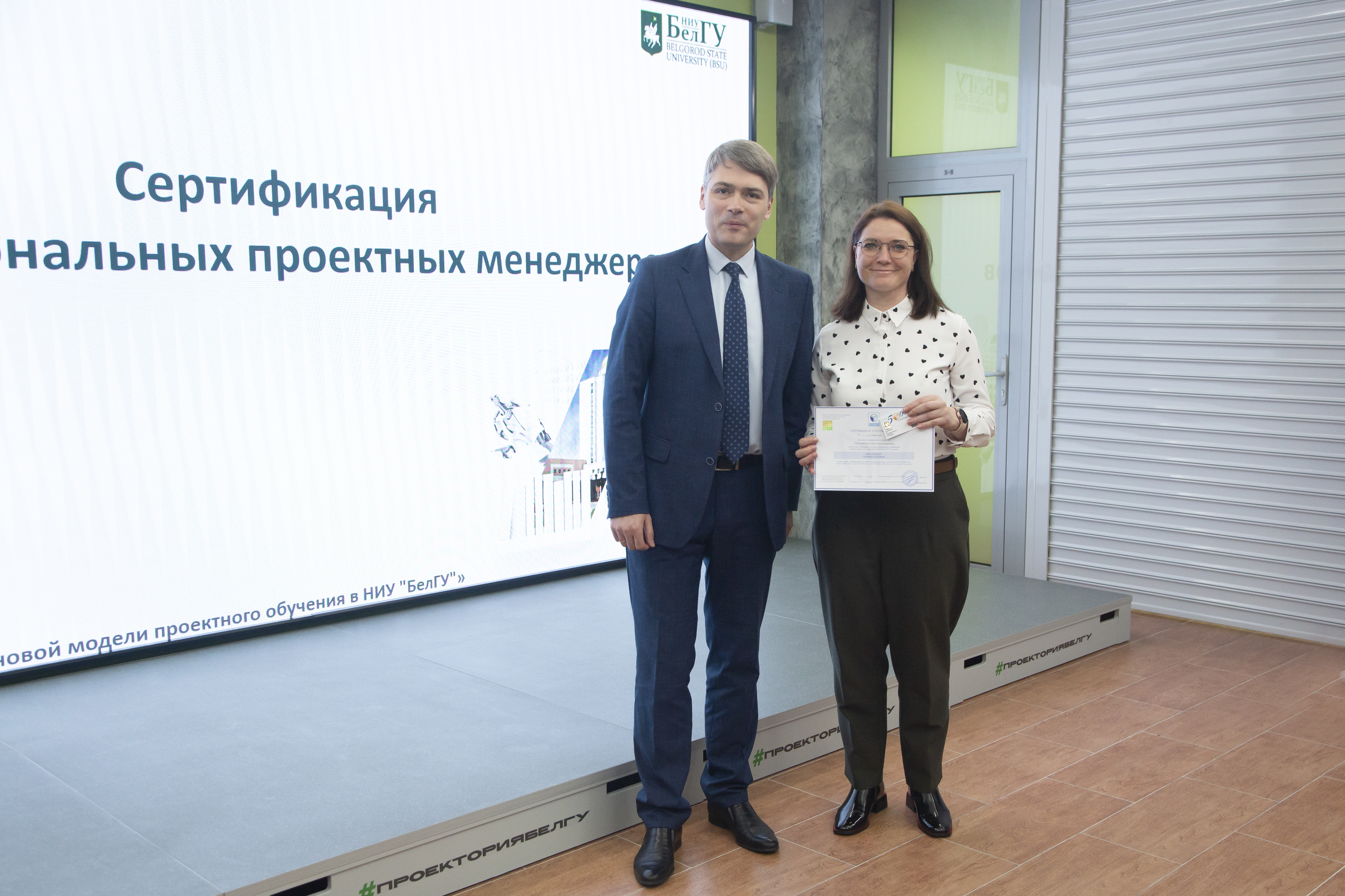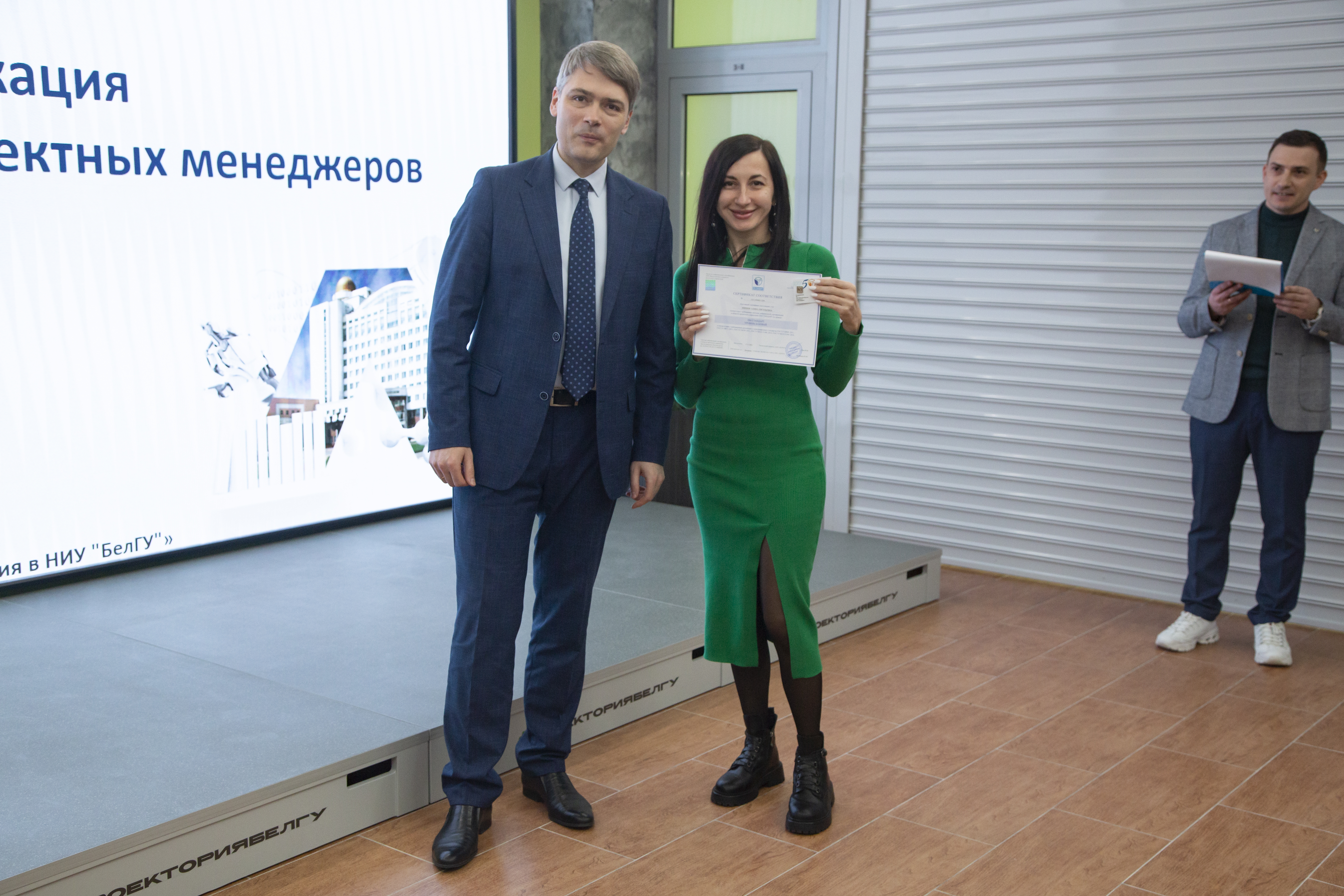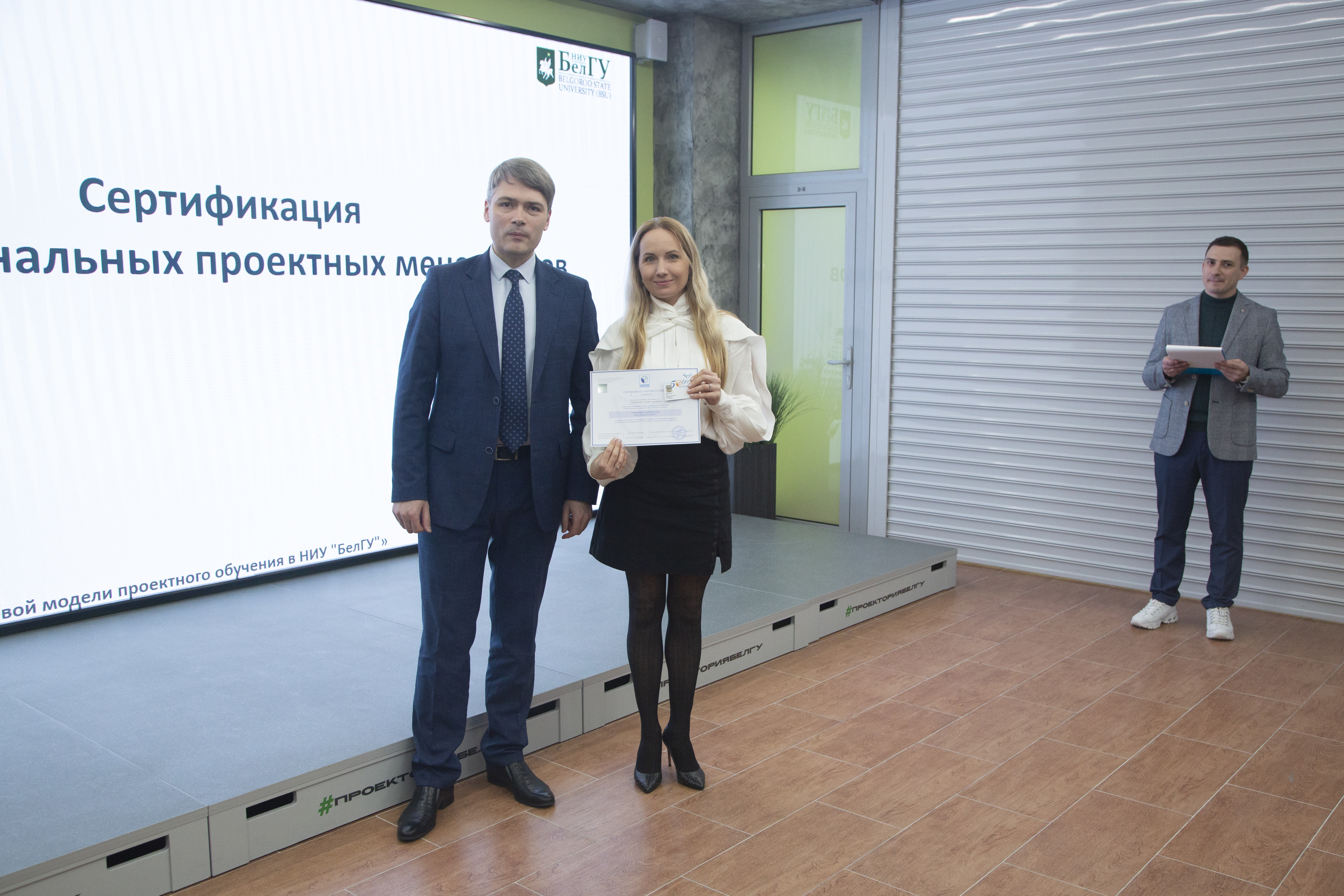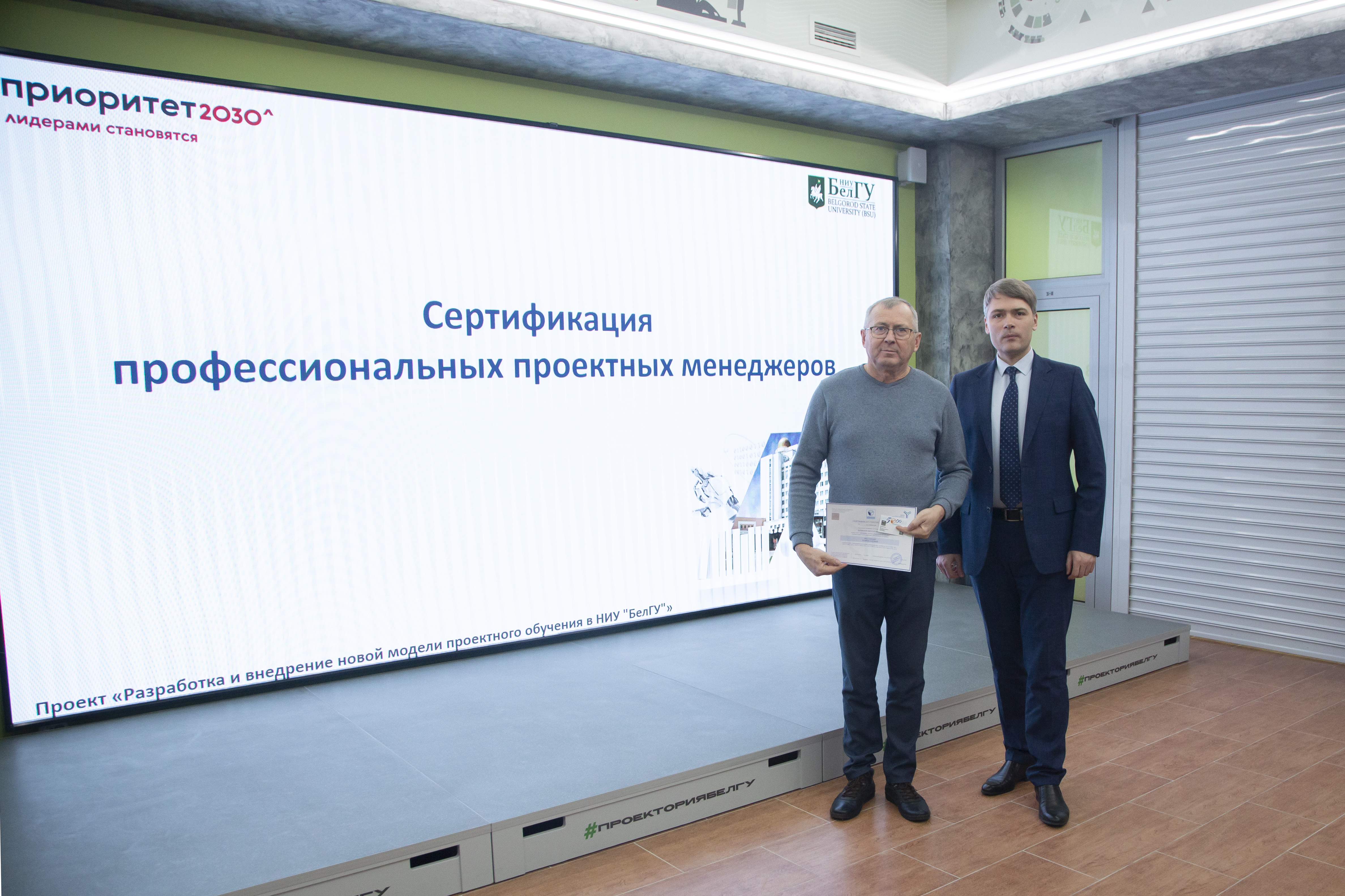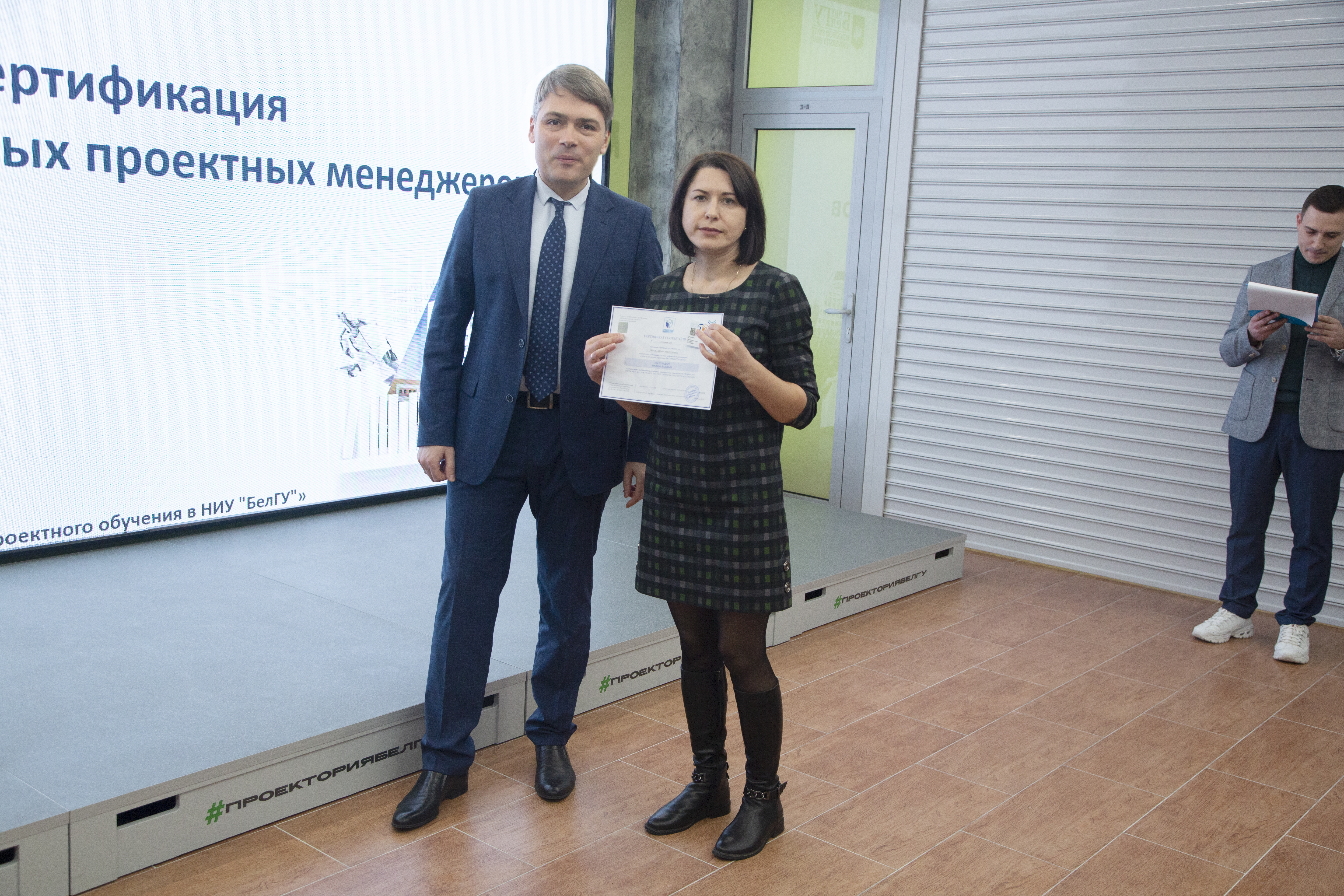 Документы о прохождении национальной сертификации ПМ СТАНДАРТ на уровень «Руководитель проектов» получили заведующий кафедры менеджмента и маркетинга Борис Тхориков, преподаватели кафедры Наталья Маматова, Татьяна Стрельцов, сотрудники проектного офиса аппарата ректора НИУ «БелГУ» Светлана Гайворонская, Елена Шиянова, Александр Гуков.