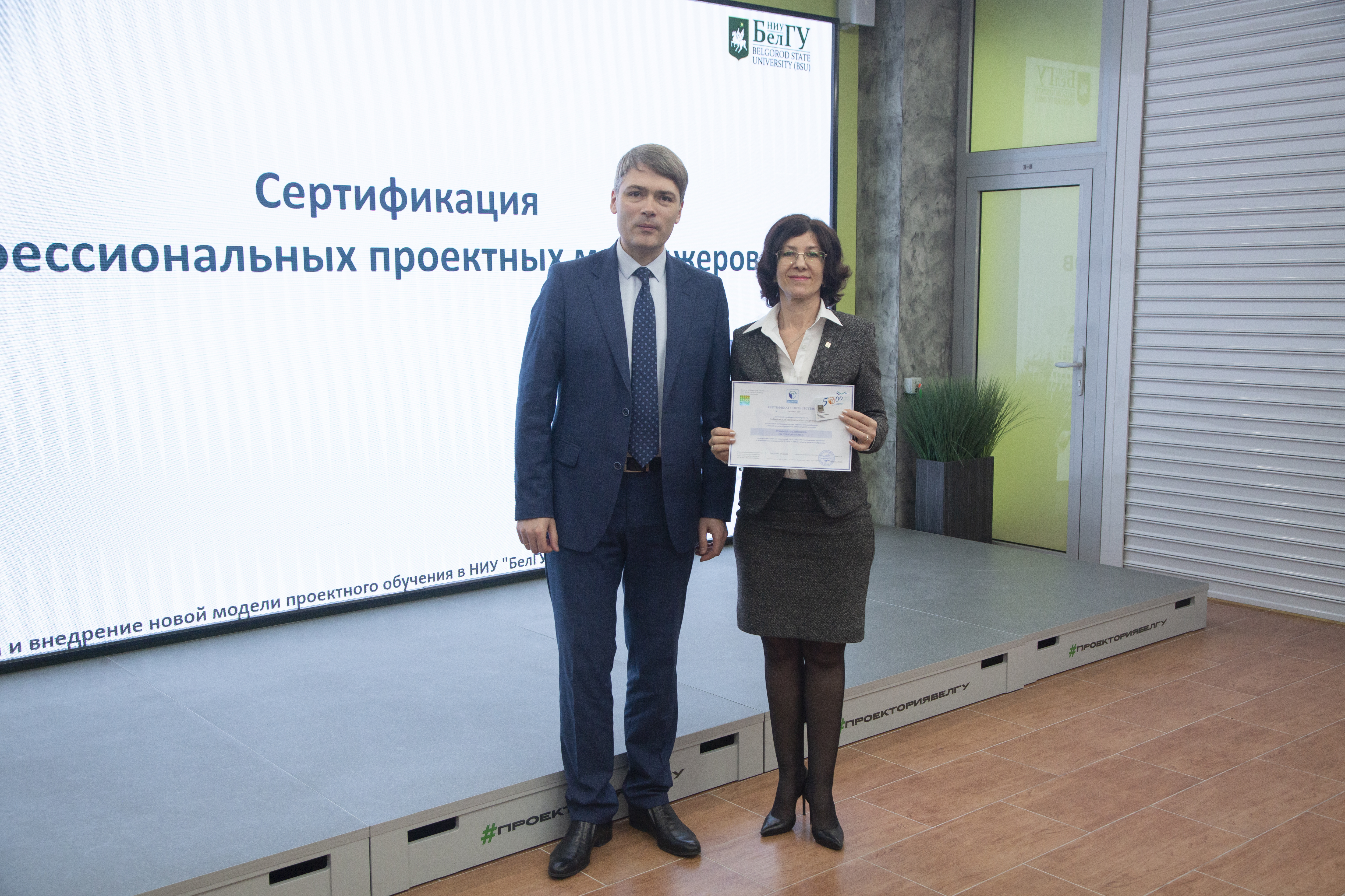 В открытом пространстве «Проектория» состоялось торжественное вручение представителям вуза сертификатов на соответствие национальным и международным стандартам в области проектного управления.