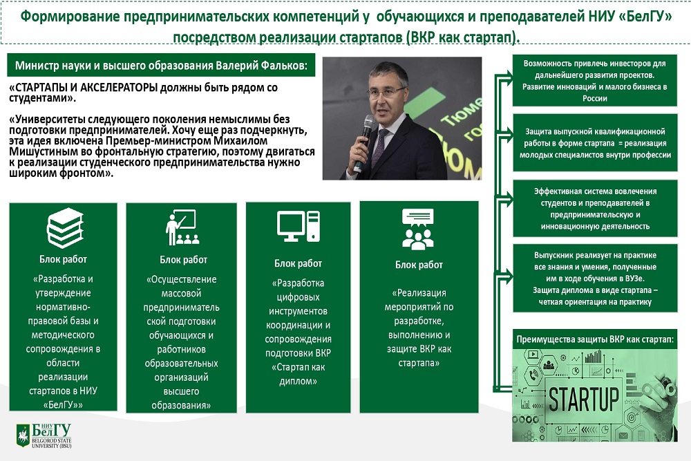 Ректор также поручил увеличить количество защит выпускных квалификационных работ в форме стартапов, отметив, что такой подход помогает реализоваться молодым специалистам в профессии.