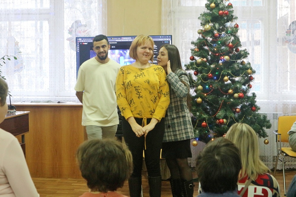 По завершении акции благотворительного марафона, 18 января, студенты иностранных землячеств в сопровождении директора Центра межкультурной коммуникации – куратора землячества арабских стран Северной Африки Кристины Хабаровой и директора Центра гражданско-патриотического воспитания обучающихся НИУ «БелГУ» – куратора землячества стран Латинской Америки Инны Кузнецовой посетили воспитанников Белгородской местной общественной организации инвалидов детства «Тепло души». Встреча состоялась в зале библиотеки-филиала № 16 ЦБС города Белгорода.