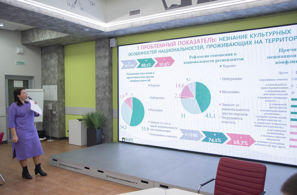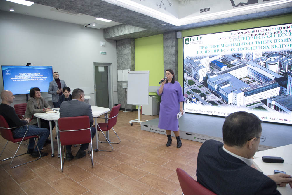Проектно-образовательный центр «Проектория» НИУ «БелГУ» стал площадкой для проведения стратегической сессии «Практики межнациональных взаимоотношений в полиэтнических поселениях Белгородской области». Инициатором мероприятия выступило министерство общественных коммуникаций региона. На встрече представили результаты социологического исследования на тему межнациональных отношений в регионе, проведённого Международным центром социологических исследований (МЦСИ) НИУ «БелГУ» в рамках проекта «Развитие регионального института изучения общественного мнения» программы «Приоритет-2030». Их озвучила руководитель проекта, директор МЦСИ, заведующая кафедрой социологии и организации работы с молодёжью Белгородского госуниверситета, профессор Инна Шаповалова.