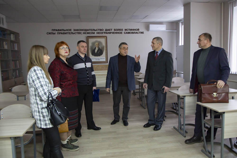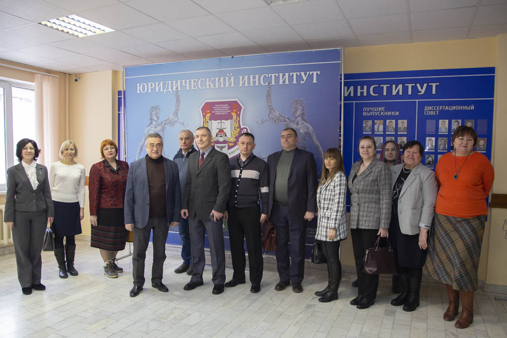 Представители делегации ознакомились с деятельностью юридического института. Директор института, профессор Евгений Тонков рассказал гостям об основных направлениях работы и провёл экскурсию по именным аудиториям института и лабораториям судебной фотографии и судебной видеозаписи, трасологических исследований, почерковедческой экспертизы.