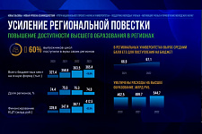 Отдельное внимание было уделено вопросу обеспечения бюджетными местами выпускников школ, возможности получения студентами бесплатной дополнительной квалификации (их количество за год возросло на 40%) и работе над успешным трудоустройством выпускников вузов.