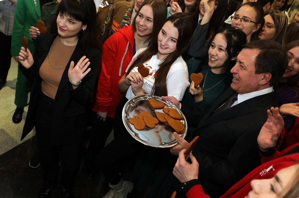 Любимым и всегда ожидаемым событием стало угощение студентов медовыми пряниками, которые ребятам по традиции вручил ректор Олег Полухин.