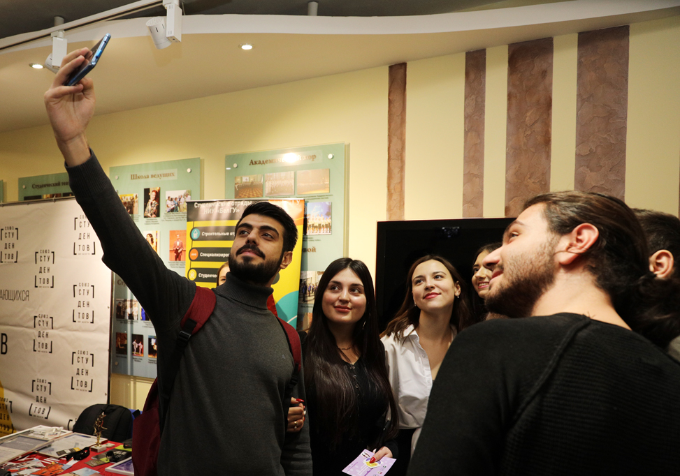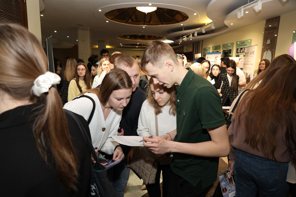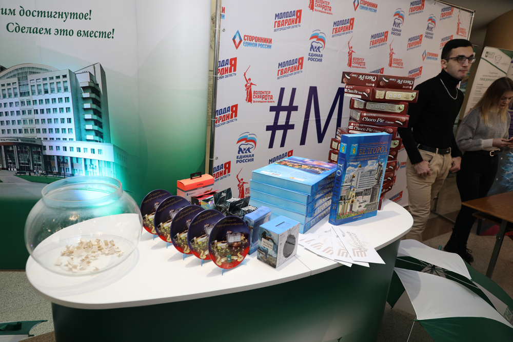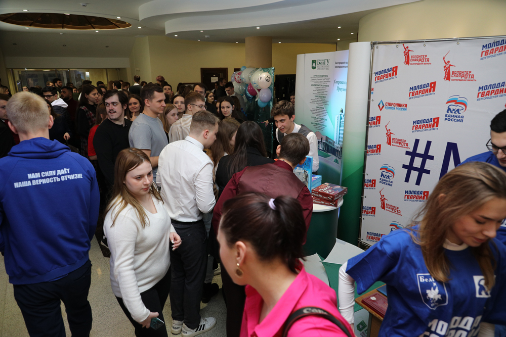 Перед началом мероприятия фойе Молодёжного культурного центра превратилось в подготовленную университетским Центром молодёжных инициатив интерактивную площадку с фотозонами. Здесь можно было посмотреть на презентации студобъединений и принять участие в «Больших студенческих играх», викторинах, квестах и конкурсах, где были разыграны призы от университета, УСК Светланы Хоркиной и объединённого профкома НИУ «БелГУ».