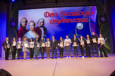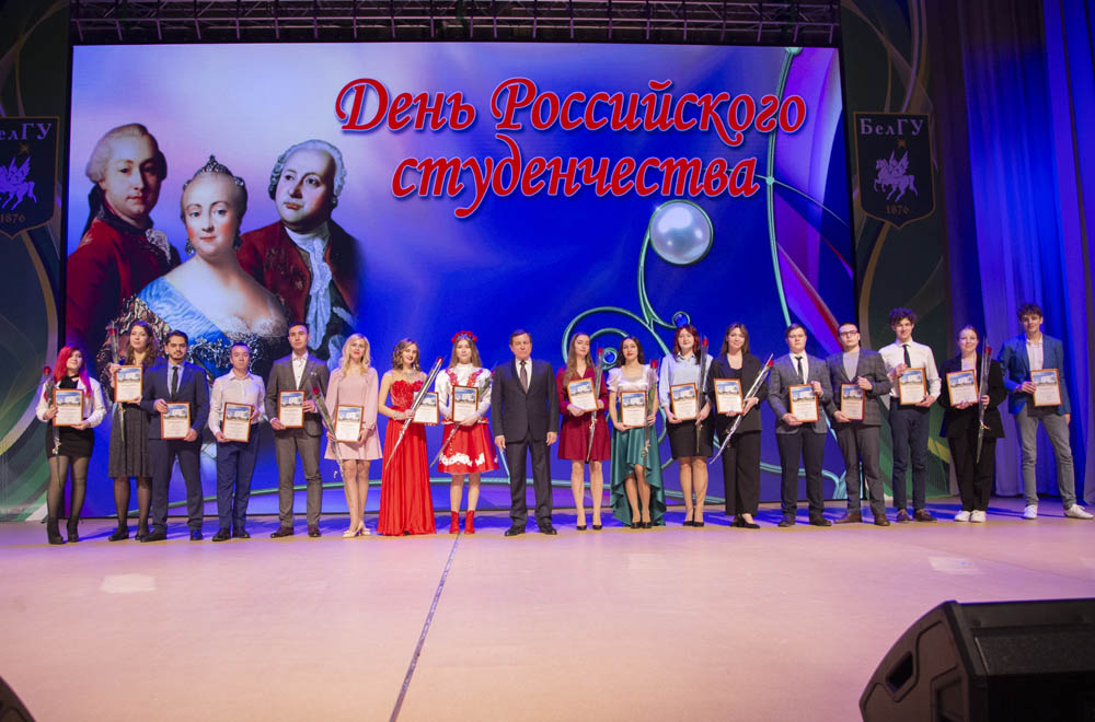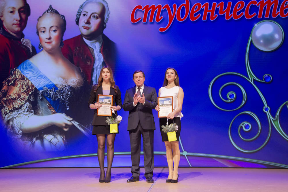 По сложившейся традиции, руководитель вуза начал церемонию награждения студентов за активное участие в общественной деятельности и развитии органов студенческого самоуправления вуза, активное участие в культурно-творческой деятельности с вручения Благодарности НИУ «БелГУ» именинницам – Татьянам. Обладательницами наград и цветочных композиций с веточками цветущей сирени, выращенной специально к празднику в Ботаническом саду НИУ «БелГУ», стали Татьяна Дьячкова из юридического института и Татьяна Гончарова из института экономики и управления.