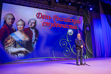 Главное праздничное действо развернулось в концертном зале. Во время театрализованного пролога к классическим ведущим присоединились церемониймейстер и директор Императорской Академии наук и художеств в Санкт-Петербурге, инициатор учреждения и первый председатель Императорской Академии Российской Екатерина Дашкова.
