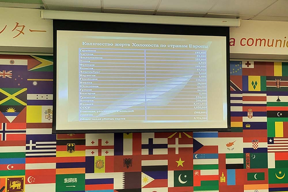 Кандидат исторических наук и бессменный лектор на всех мероприятиях центра по истории и культуре России Анастасия Стржалковская в этот раз рассказала иностранным обучающимся университета о чудовищных злодеяниях нацистских преступников не только по отношению к евреям, жившим на протяжении 1933-1945 годов в Германии, на территории её союзников и зоне оккупации, но и к представителям различных этнических и социальных групп (полякам, цыганам, советским военнопленным, коммунистам, масонам, неизлечимо больным, инвалидам и др.) в период существования нацистской Германии. Студенты узнали, что этот страшный эпизод истории получил название «Холокост», общепринятое практически на всех языках мира.