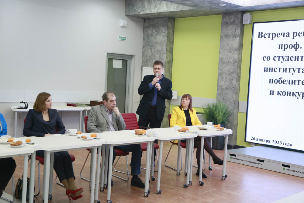 В проектно-образовательном центре «Проектория» Белгородского госуниверситета прошла встреча ректора со студентами медицинского института. Приветствуя присутствующих, ректор НИУ «БелГУ», профессор Олег Полухин подчеркнул, что здесь собралась студенческая медицинская элита – молодые люди, отстаивающие честь вуза на различных конкурсах и олимпиадах, формируя положительный имидж университета.