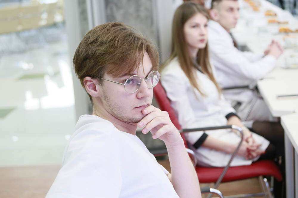 В свою очередь студент пятого курса, лидер направления «Хирургия», победитель и призёр 8 олимпиад и конкурсов в 2022 году Николай Казбан ознакомил гостей с итогами участия в профильных олимпиадах и рассказал о целях, задачах и уникальности обучения в симуляционном центре мединститута. Николай высказал пожелание увеличить количество практик у студентов-медиков и расширить парк симуляционного оборудования.