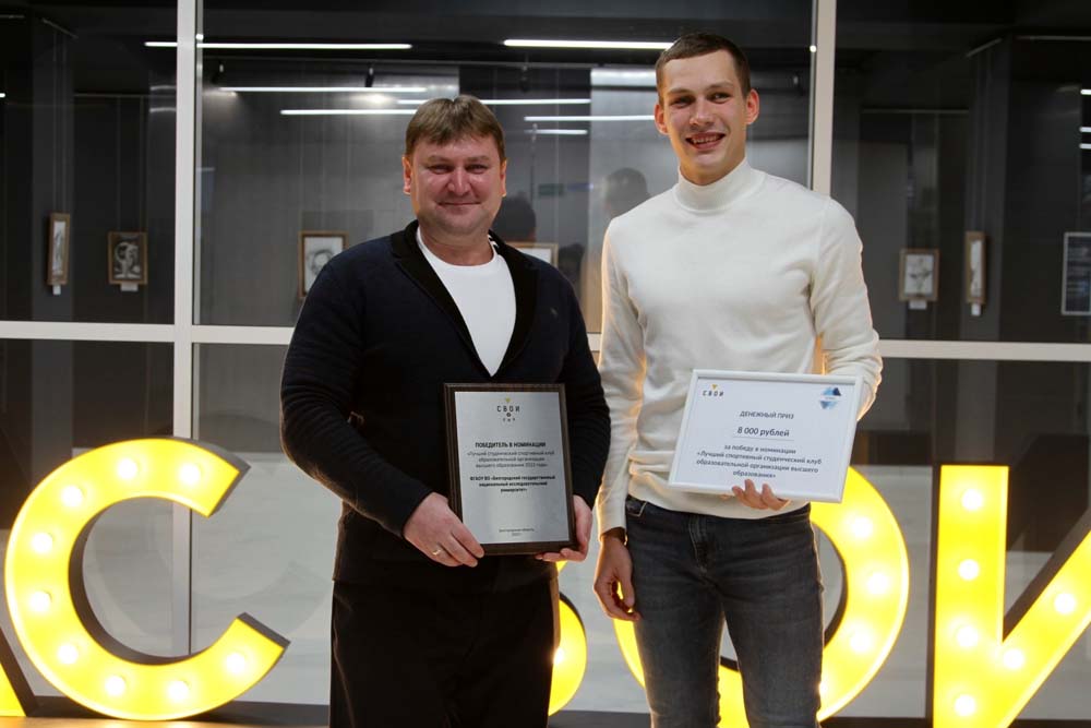 Мероприятие продолжилось вручением наград победителям конкурса «Лучший студенческий спортивный клуб» среди образовательных организаций высшего и профессионального образования Белгородской области. Клубы оценивались по результатам работы, портфолио, промо-ролику и защите уникальной практики.