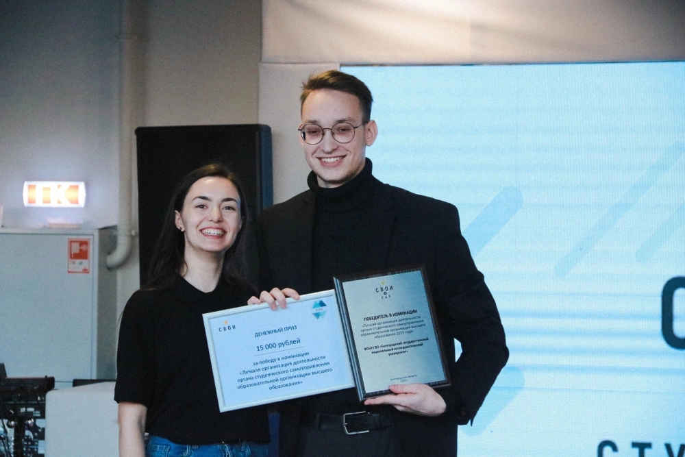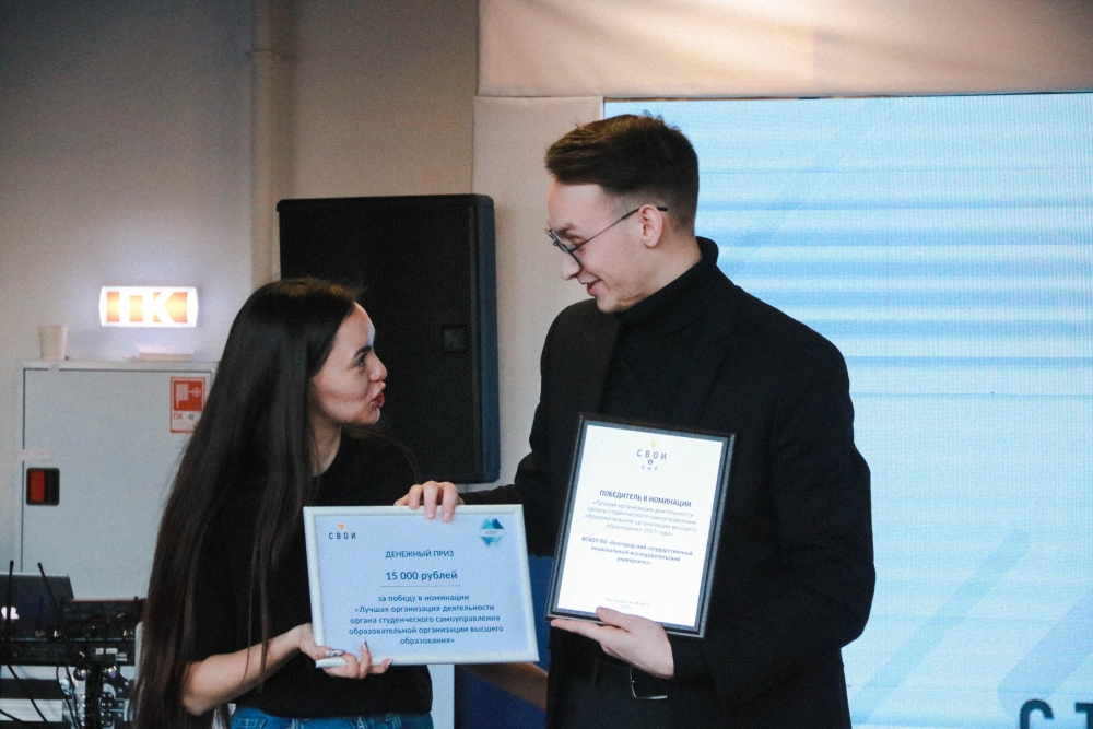 По результатам годовой работы выбраны лучшие органы студенческого самоуправления и спортивные клубы образовательных организаций Белгородской области. Объединённый совет обучающихся «Союз студентов» НИУ «БелГУ» одержал победу в номинации «Лучшая организация деятельности органа студенческого самоуправления образовательной организации высшего образования». Награду вручили председателю студсовета Леониду Родионову.