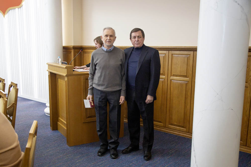 Заседание учёного совета началось с торжественного момента. Ректор вуза, профессор Олег Полухин вручил профессору кафедры материаловедения и нанотехнологий института инженерных и цифровых технологий Геннадию Салищеву медаль «За безупречный труд и отличие» Министерства науки и высшего образования РФ.