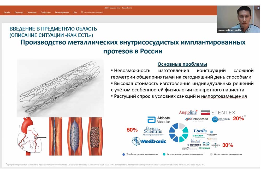 Активная работа предстоит по проекту «Разработка технологии производства металлических внутрисосудистых имплантированных протезов методом селективного лазерного сплавления». К декабрю 2023 года предусмотрена разработка не менее трёх режимов для разных технологических этапов изготовления устройства и технологий его последующей обработки.