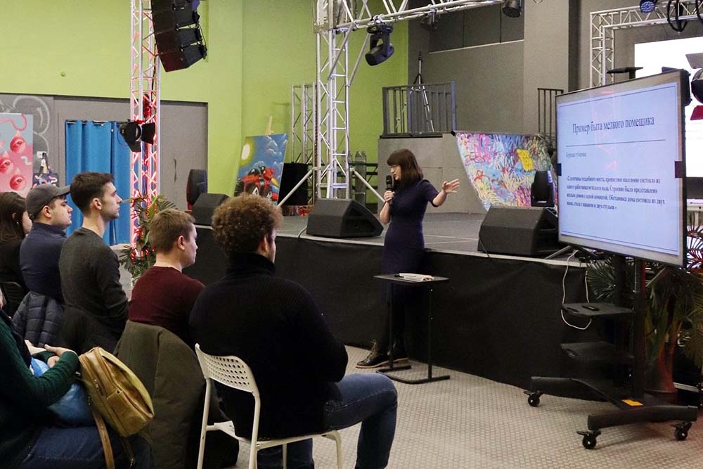 Погружая аудиторию в тему, лектор отметила, что дворянство можно разделить на крупнопоместное, среднепоместное и мелкопоместное, последние – составляли большинство (около 80%). Образ жизни мелкопоместных дворян, менталитет, образование были совершенно не такие, как у верхних страт дворянства.