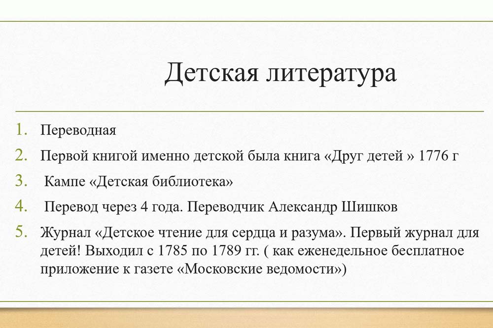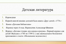 Историк рассказала досуге как богатых, так и бедных дворян, о воспитании детей в дворянских семьях и детской литературе. Так, до 1760 года в России было издано всего 11 детских книг, в основном это были переводы с немецкого. А с 1760 года по конец XVIII века было уже более 200 детских изданий, две трети из них являлись переводными.