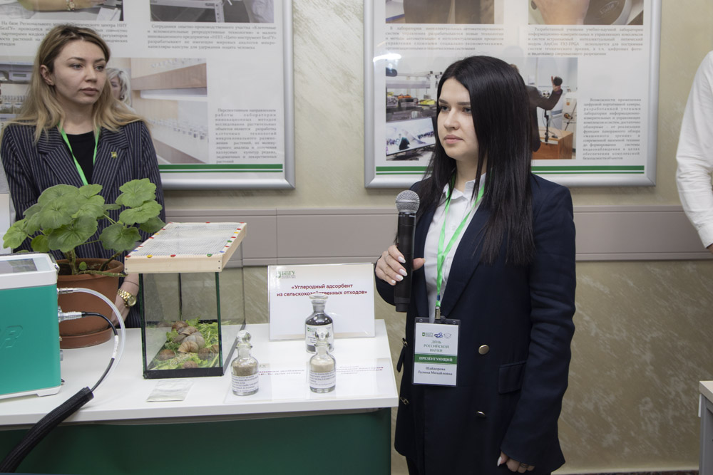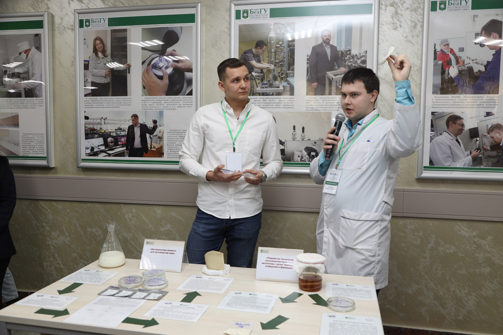Представители Биологического учебно-научного комплекса «Инновационные решения» института фармации, химии и биологии продемонстрировали свои достижения в области косметологии и изготовления функциональных продуктов питания. Успешные молодые учёные в области биотехнологий Владислав Сенченков и Илья Никишин рассказали о разработке технологии получения из чайного гриба бактериальной целлюлозы для применения в медицине и фармации.