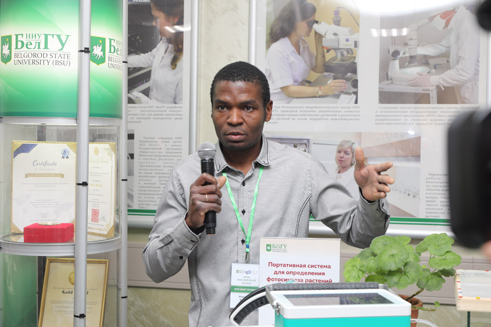Гости выставки смогли ознакомиться и с проектом по созданию в регионе карбонового полигона, реализуемого по программе «Приоритет-2030» на площадке Ботанического сада НИУ «БелГУ». О нём рассказал сотрудник сектора оранжерейных растений Морабандза Куму Буйа,
