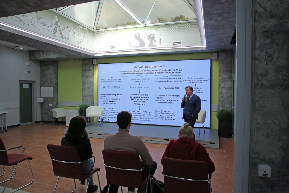 Одним из первых мероприятий Дня науки стала открытая лекция «Генетические технологии в молодёжной науке» директора Объединённого центра генетических технологий НИУ «БелГУ», доцента кафедры фармакологии и клинической фармакологии, кандидата биологических наук Алексея Дейкина.