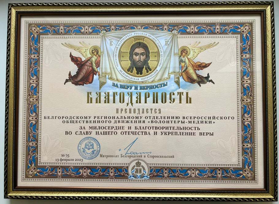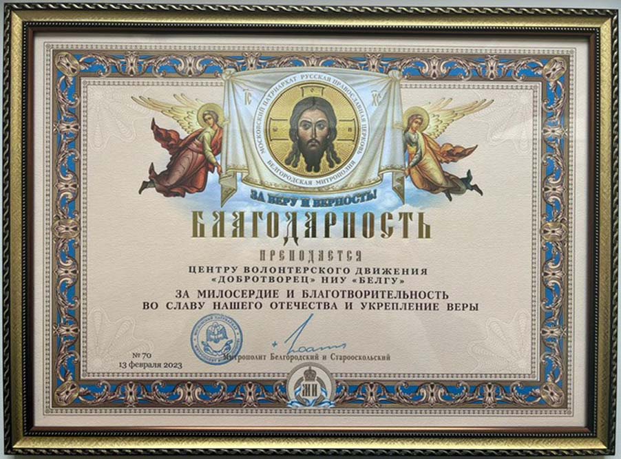 Благодарностей Митрополита Белгородского и Старооскольского удостоены добровольцы центра волонтёрского движения «ДоброТворец» НИУ «БелГУ» и Белгородского регионального отделения всероссийского общественного движения «Волонтёры-медики».