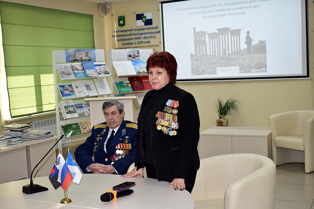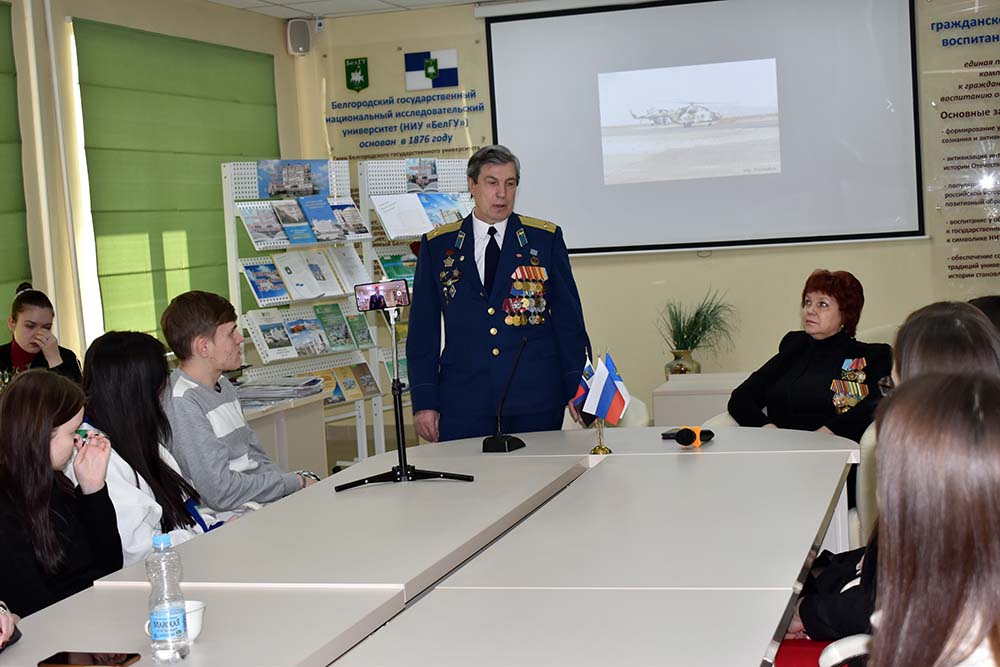 В Центре гражданско-патриотического воспитания НИУ «БелГУ» состоялась встреча студентов вуза с участником Афганского конфликта (1979-1989) Василием Малюцким и заместителем председателя БРОО «Союз офицеров» Валерией Голоус.