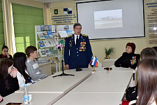 Совершивший 555 вылетов ветеран вспоминал о событиях того времени, сопровождая свой рассказ фотографиями и объясняя студентам, что на них изображено.