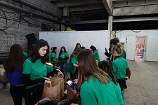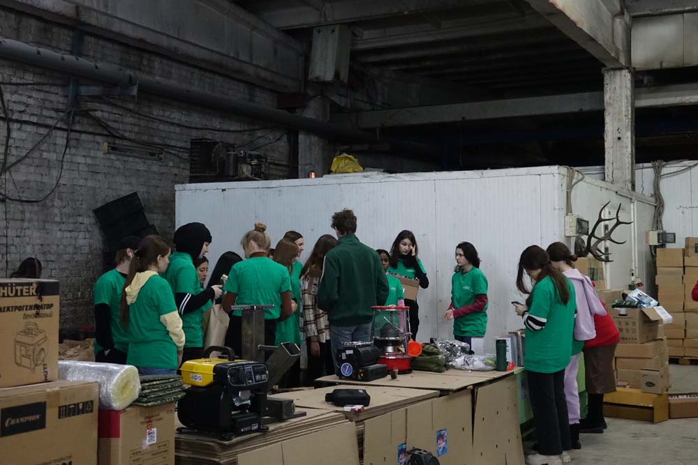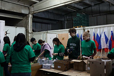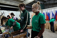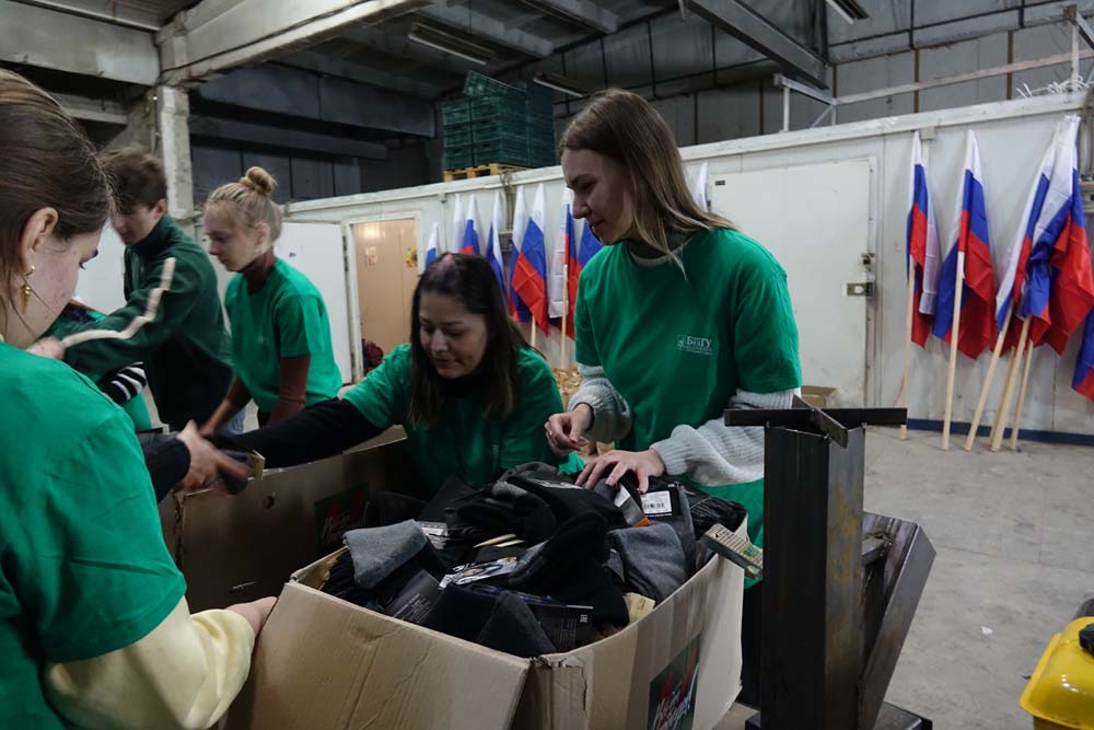 В преддверии праздника студенты НИУ «БелГУ» и активисты Народного фронта на одном из пунктов распределения гуманитарной помощи помогали собирать подарочные наборы для военнослужащих, находящихся в зоне СВО.