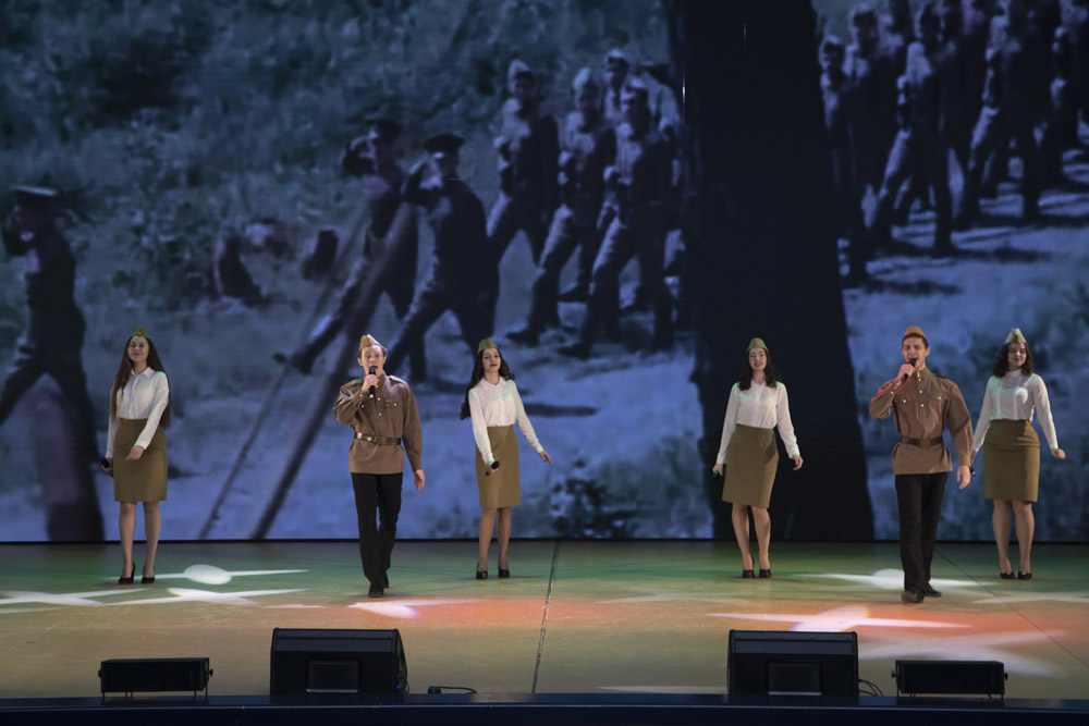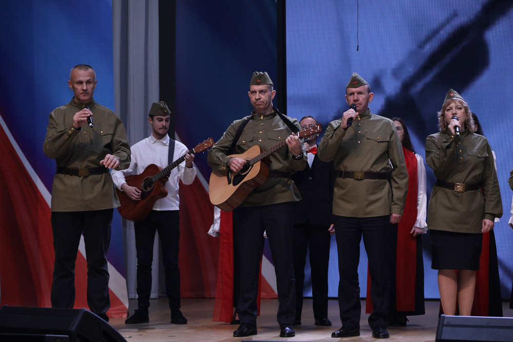 Со сцены звучали стихи и песни об исторических победах русского народа – Куликовском и Бородинском сражениях, Полтавской битве и сражениях под Москвой и Сталинградом, Курской Дуге и освобождении Европы от фашистских захватчиков. Не обошли стороной и тему СВО. Участники мероприятия узнали об образовании Белгородской засечной черты и её современном аналоге, посмотрели обращение бойцов противовоздушной обороны к жителям Белгорода и увидели признание в любви к отважным героям нашего времени.