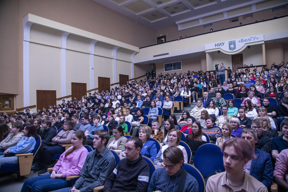 Коллектив университета поздравил ректор НИУ «БелГУ», профессор Олег Полухин. Рассказывая о подвигах героев прошлого и настоящего, в том числе выпускников Белгородского учительского института, которые в 1941 году сразу после получения дипломов ушли на фронт, Олег Николаевич отметил, что 23 февраля – отнюдь не мужской праздник: многие женщины защищали и защищают Отечество наравне с мужчинами. В пример он привёл выпускницу медицинского колледжа 2013 года прапорщика Екатерину Иванову, которая в зоне специальной военной операции, рискуя жизнью, спасает раненых.