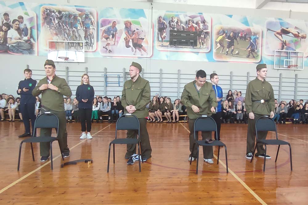 Молодые люди продемонстрировали отличные навыки строевой подготовки и умение собирать автомат Калашникова, показали пародию на виды войск, а также выполнили задания на сплочённость и скорость. Завершилась программа традиционным перетягиванием каната.