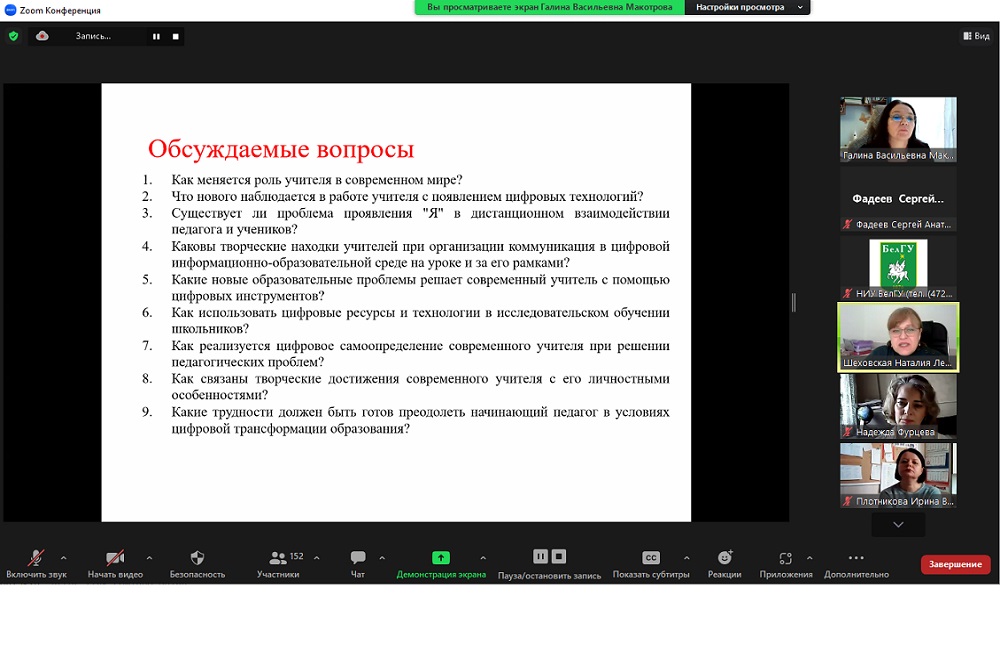 Семинар «Творческая самореализация учителя в условиях цифровой трансформации образования» прошёл под руководством профессора кафедры педагогики факультета психологии, руководителя лаборатории инновационных педагогических технологий НИУ «БелГУ» Галины Макотровой.