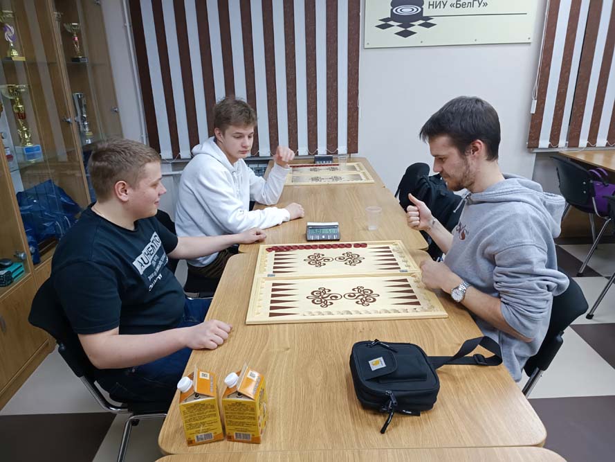 В турнире по нардам победил Александр Иванов (директор Центра развития интеллектуальных видов спорта). Среди обучающихся первое место занял Никита Бабаскин (ИИиЦТ), второе – завоевал Никита Городов (юридический институт), третьим стал Максим Беликов (юридический институт).