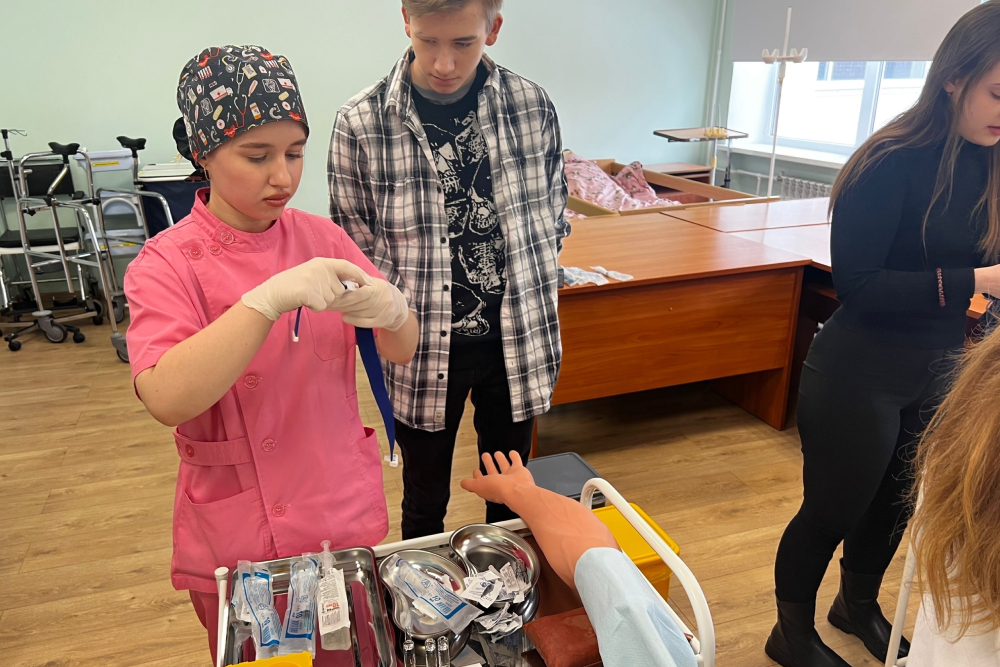 Молодые люди смогли самостоятельно провести манипуляции на учебных симуляторах, изготовить лекарственные формы и отработать навыки оказания первой помощи.