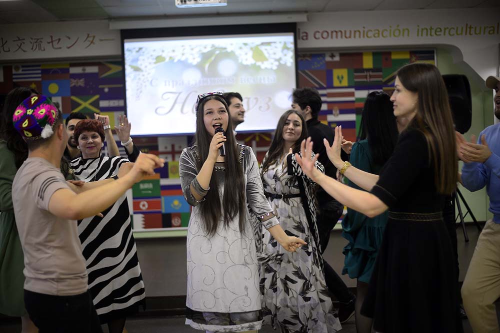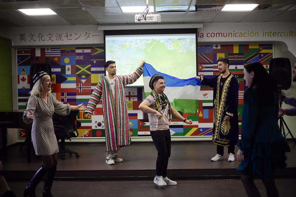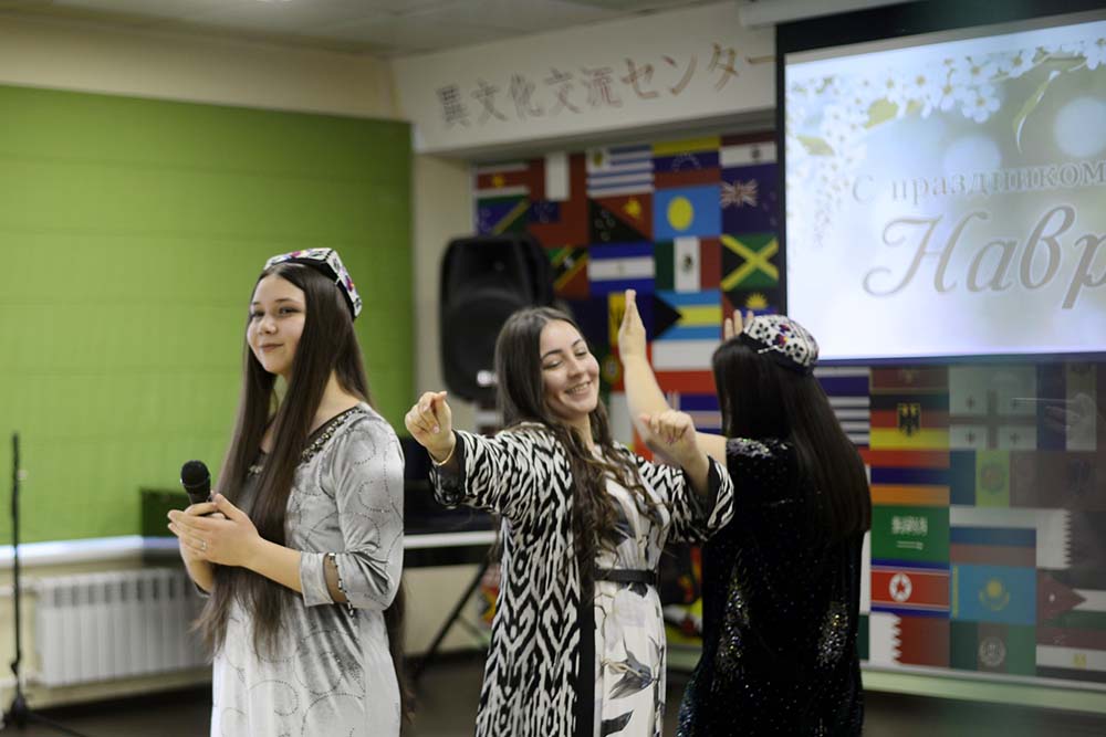 Виновники торжества исполнили национальные песни и танцы, приняли участие в дефиле традиционных костюмов своих стран. Представители других землячеств университета поздравили ребят из Центральной Азии с праздником начала весны творческими номерами.