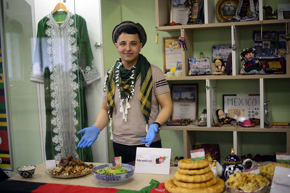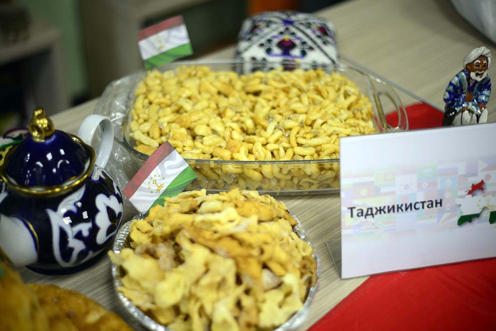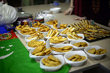 Продолжился вечер дегустацией национальных блюд тюркских и иранских народов, приготовленных студентами университета, представителями этих этносов. Присутствующие имели возможность попробовать такие угощения, как афганский плов и салат шакароб, узбекские манты с тыквой, туркменские пельмени борек, таджикский чак-чак и другие яства.