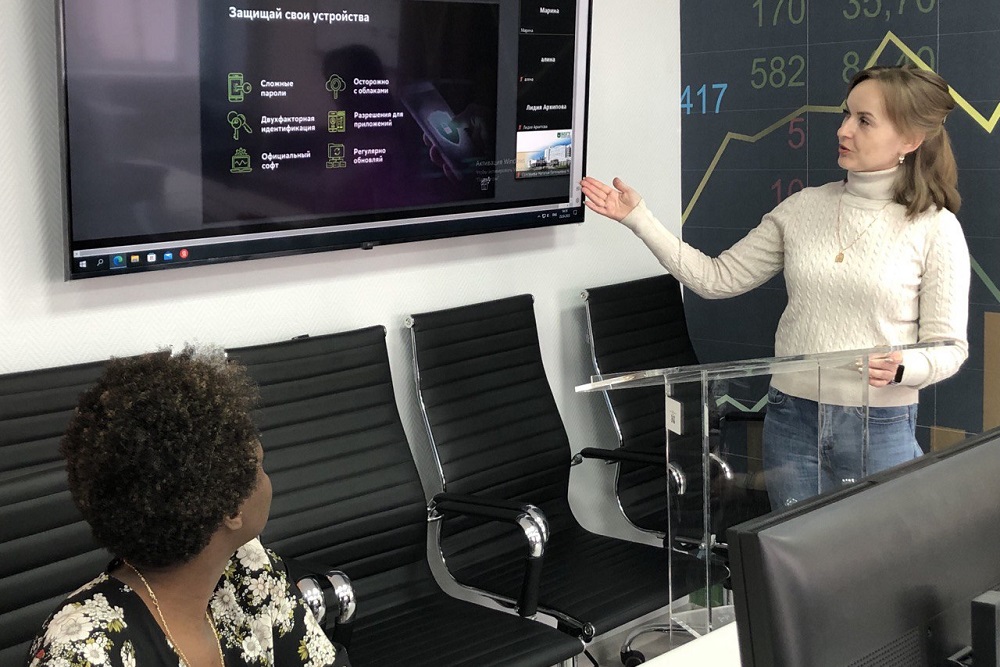 Представители Сбербанка в своём выступлении раскрыли содержание понятия киберугроз, сделав акцент на необходимости внимательного отношения к размещению личной информации в сети Интернет, особенно на подозрительных сайтах, где она не является защищённой. Отвечая на вопросы слушателей, специалисты дали ряд рекомендаций, которые позволят снизить уровень киберугроз. Это использование официального программного обеспечения, установка сложных паролей, двухфакторная идентификация, осторожное пользование облачным хранилищем, внимательное отношение к всплывающим окнам на сайтах, регулярное обновление приложений и официального «софта».