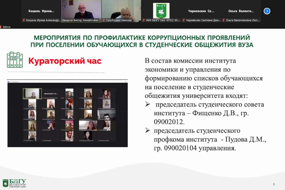 Методы профилактической работы в институтах и органах студенческого самоуправления обсудили на заседании комиссии по противодействию коррупции, экстремистским и националистическим проявлениям, терроризму, проведению антинаркотической политики НИУ «БелГУ».