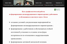 Для формирования антикоррупционной культуры в студенческой среде в университете работает Молодежный антикоррупционный совет, возглавляет который студентка юридического института Елизавета Репина. Отчитываясь о проделанной с начала учебного года работе, председатель Совета отметила, что для повышения актикоррупционной культуры студентов, овладения знаниями в области борьбы с коррупцией и необходимыми для этого навыками, а также воспитания активной гражданской позиции молодёжи в вузе проводятся тематические лекции, круглые столы, викторины. Студенты охотно участвуют в мероприятиях городского, регионального и федерального масштабов, в том числе конкурсах плакатов и эссе, а также Всероссийском антикоррупционном диктанте.