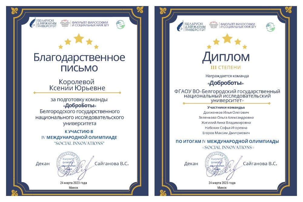 Команда студентов института общественных наук и массовых коммуникаций Белгородского госуниверситета заняла третье место в IV Международной олимпиаде Social innovations.