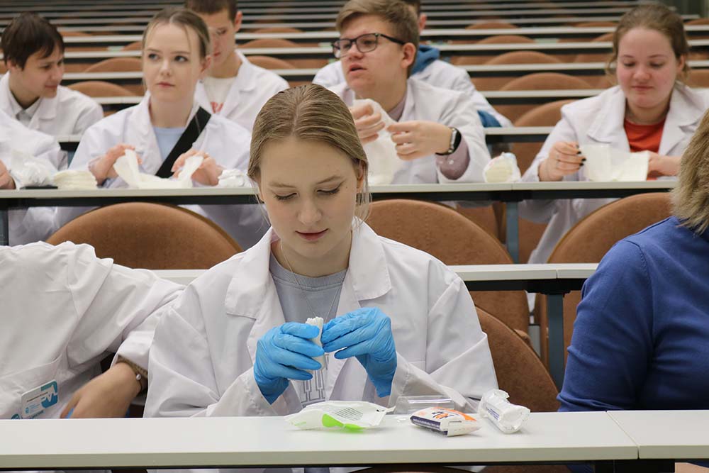 Рабочую поездку Евгения Анатольевна начала с посещения завершающего занятия профориентационного цикла «Университетские субботы» для учащихся 29 медицинских классов школ региона, который на площадке медицинского института НИУ «БелГУ» проводится второй год подряд. С 10 февраля по 1 апреля по субботам на базе Аккредитационно-симуляционного центра НИУ «БелГУ» обучение прошли более 670 школьников 10-11 классов. Будущие медики смогли пообщаться с представителями вуза, ознакомиться с материально-технической базой мединститута и узнать о правилах поступления в 2023 году.