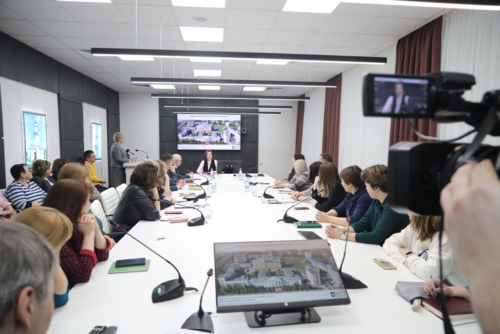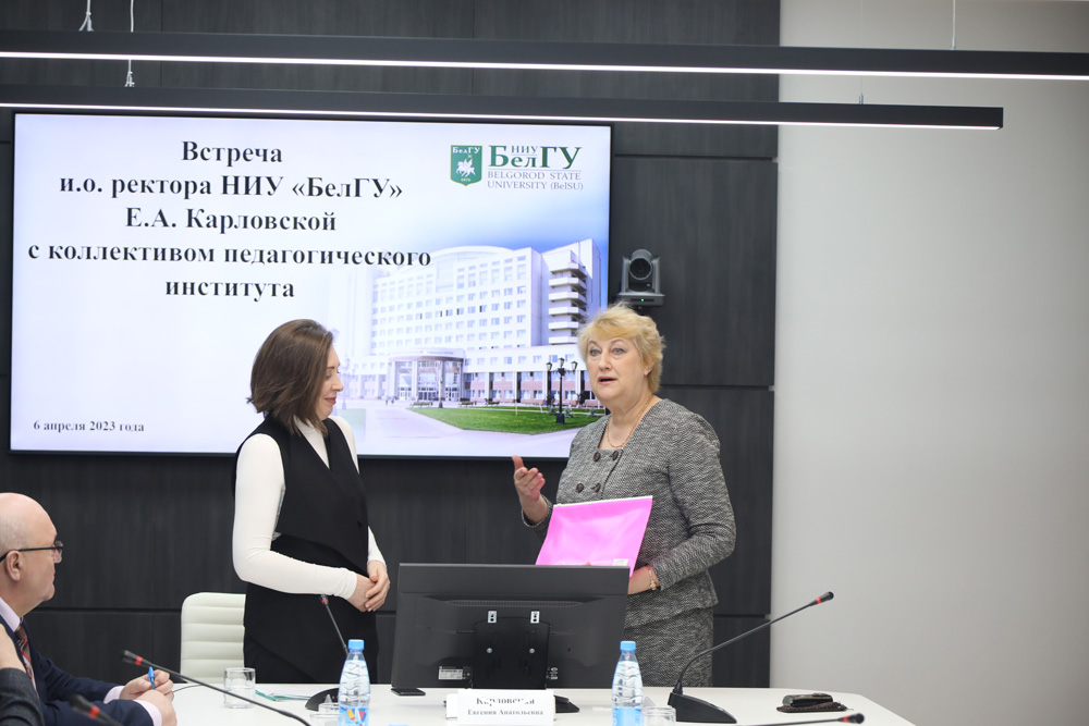 И.о. ректора НИУ «БелГУ» обсудила перспективы развития с директоратом и профессорско-преподавательским составом педагогического института, а также институтов межкультурной коммуникации и международных отношений и фармации, химии и биологии.