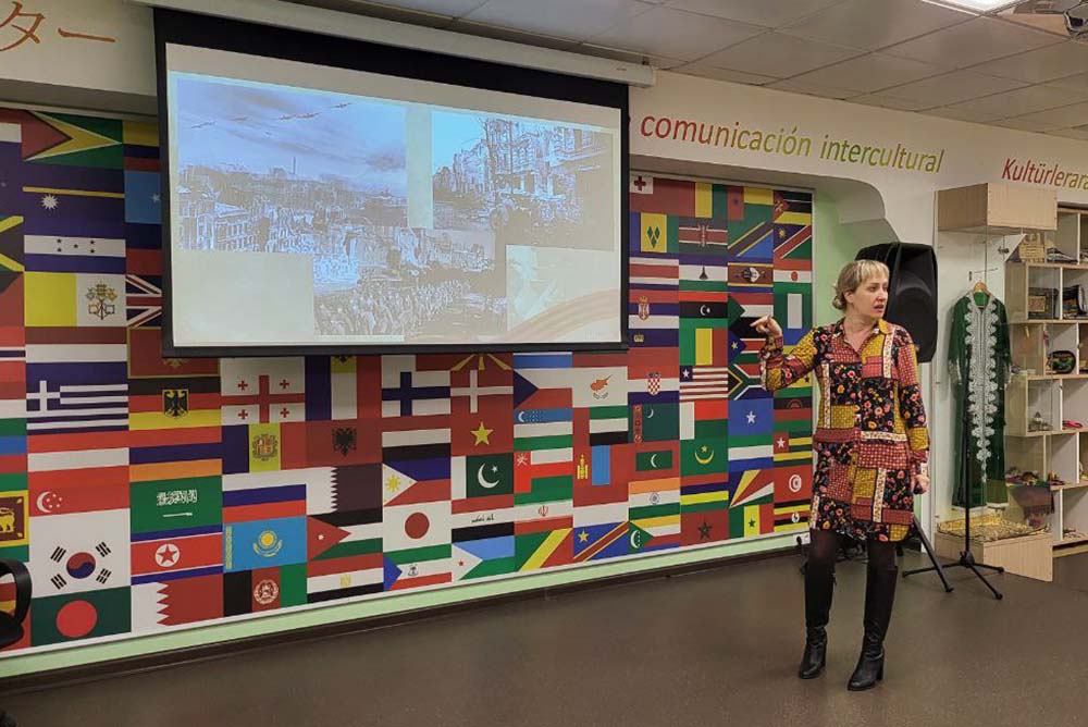 Очередное просветительское мероприятие, получившее название «На пути к Великой Победе», было посвящено освобождению Европы от фашистской Германии весной 1945 года. Студенты узнали, что освободительная миссия Советской Армии в Европе в 1944-1945 гг. шла по трём основным направлениям: юг – Румыния и Болгария, юго-запад – Венгрия и Чехословакия, запад – Польша. Новостью для иностранных обучающихся стала информация о том, что почти одновременно с началом освободительной операции советских войск в Европе – 6 июня 1944 года – со стороны США и Великобритании открылся второй фронт вооружённой борьбы против фашистской Германии. Совместные войска тогда вошли на территорию северо-западной Франции.
