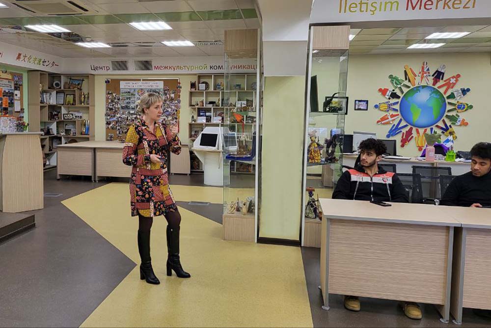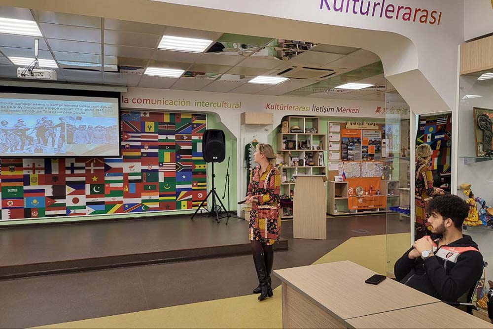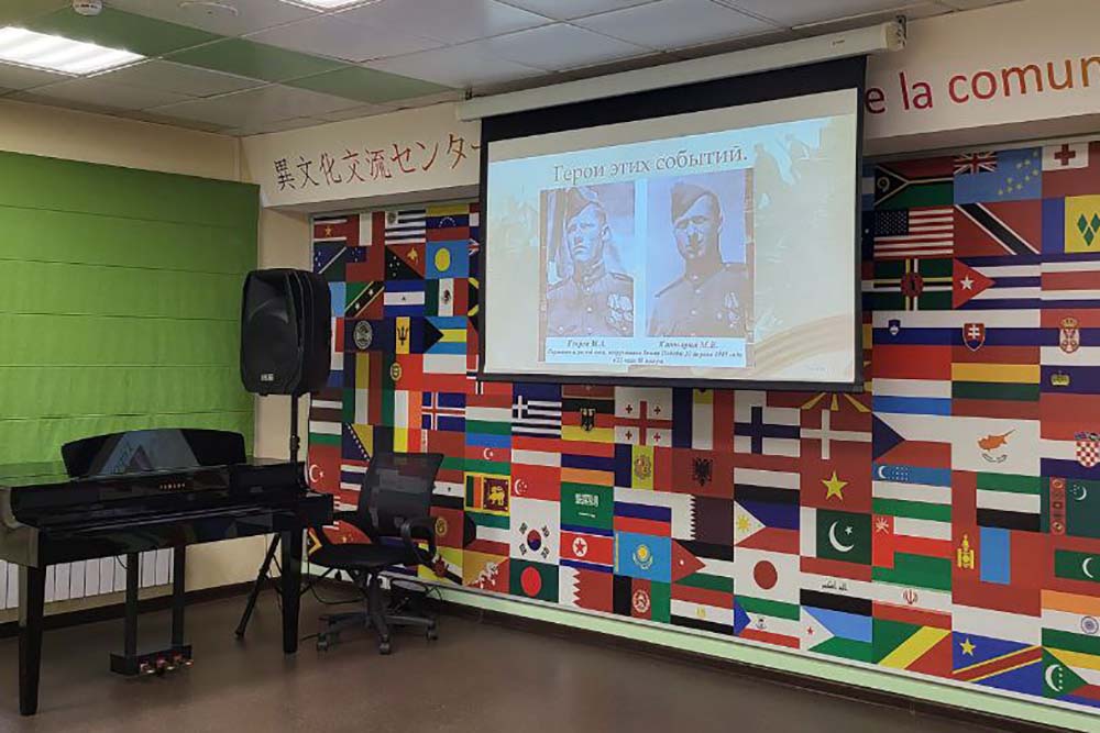 В связи с этим здесь ежемесячно проводятся информационные часы по истории России, лектором на которых выступает доцент кафедры русского языка, профессионально-речевой и межкультурной коммуникации института межкультурной коммуникации и международных отношений, кандидат исторических наук, куратор землячества Узбекистана Анастасия Стржалковская.