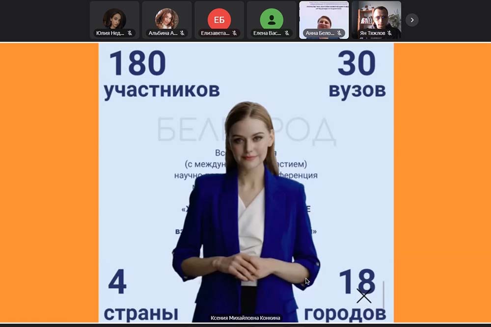 Евгений Александрович обратил внимание на то, что несмотря на онлайн-формат мероприятия, география и состав участников конференции, а также продуктивность общения молодых учёных подтверждают эффективность дистанционных технологий в поддержке высокого уровня сотрудничества Белгородского госуниверситета с вузами-партнёрами из других регионов и стран.