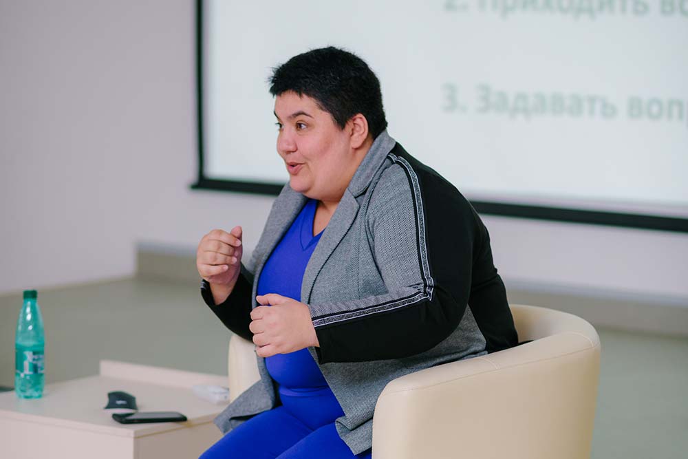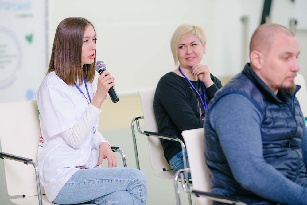 Ведущим спикером Школы выступила Евгения Кондратюк, председатель МОО «Святое Белогорье против детского рака».