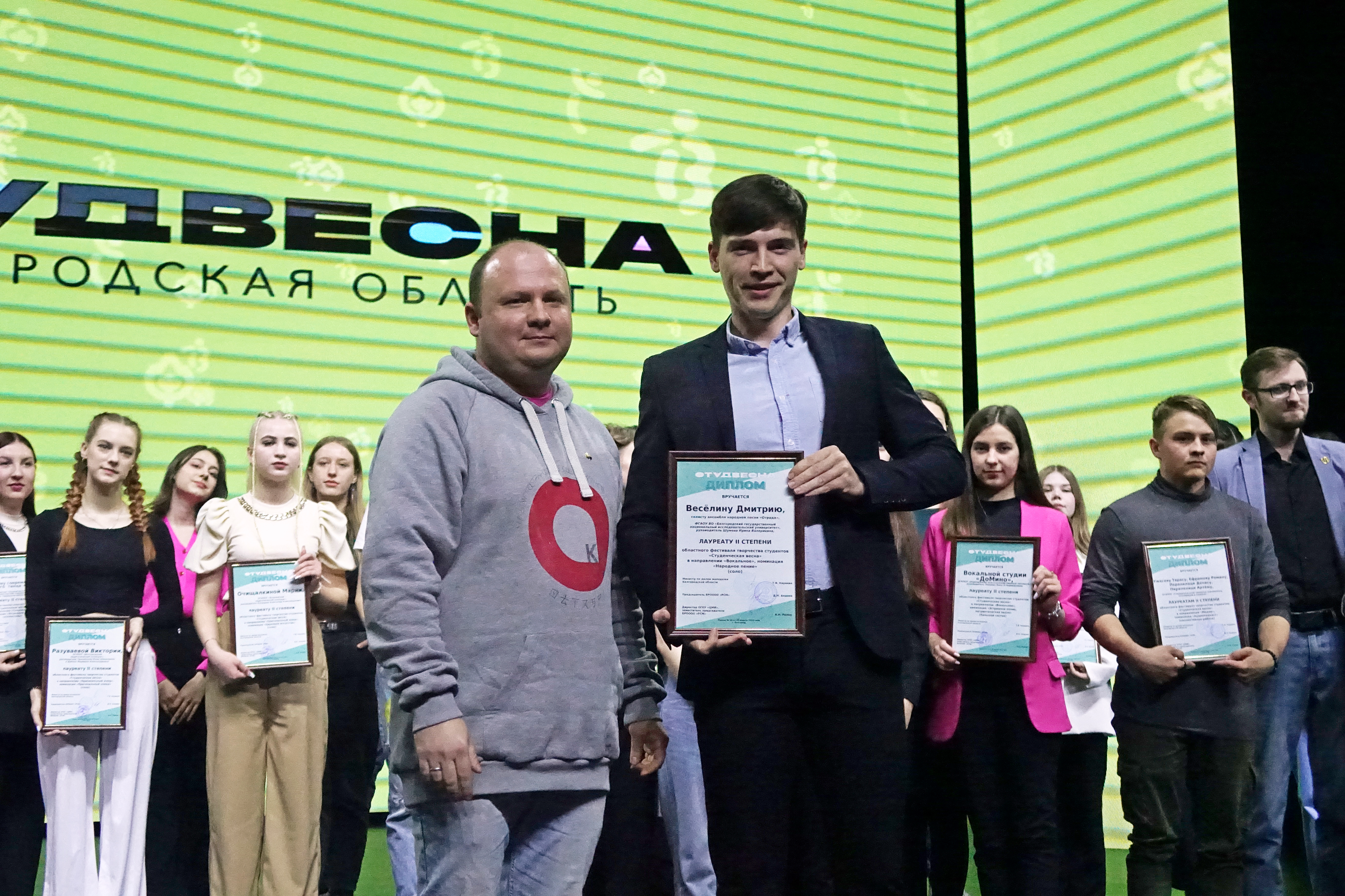На церемонии награждения победителей в Центре молодёжных инициатив назвали имена солистов и коллективы, которые будут представлять Белгородскую область на федеральном этапе ежегодного творческого фестиваля-конкурса «Студенческая весна».