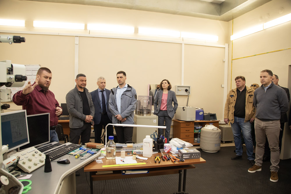 В НИИ материаловедения и нанотехнологий, к лабораторной базе которого гости университета проявили особый интерес, сегодня ведутся фундаментальные исследования мирового уровня в сфере энергетики, медицины, авиационной, машиностроительной отраслей, освоены перспективные аддитивные технологии. Здесь собран парк оборудования, необходимого для изучения свойств металлов и их прогнозирования, создана база для работы с керамикой. Представители машиностроительного комплекса Белгородской области смогли убедиться в том, что на имеющемся оборудовании учёные решают задачи любой сложности, проводя комплекс работ от исследований свойств материалов и их испытаний до получения опытного образца.